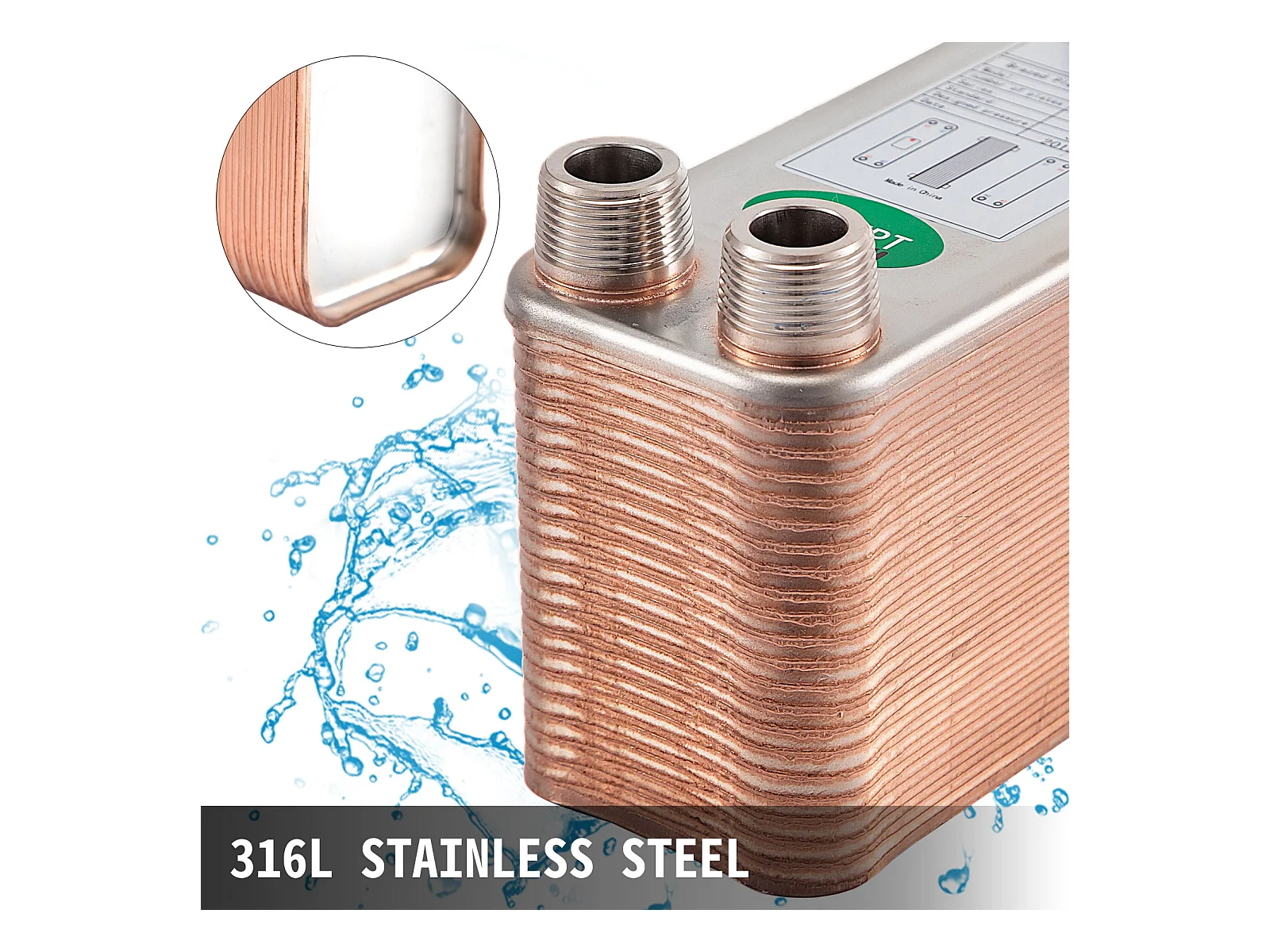 Échangeur de Chaleur Brasé SucceBuy, Échangeur de Chaleur Brasé à 40 Plaques en Acier Inoxydable 316L, Refroidisseur à Plaques pour Chauffage Hydronique
