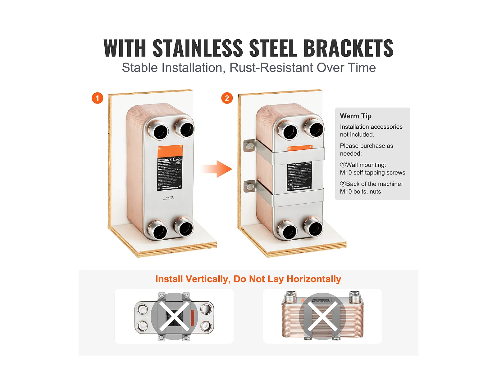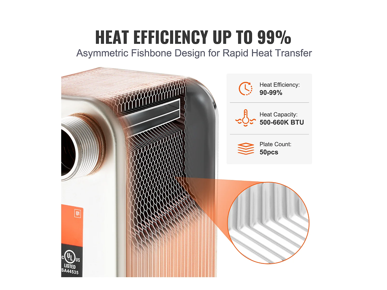 Échangeur de Chaleur SucceBuy à 50 Plaques 41-0.64 cm Ports MNPT 12.7cm x 30.5cm Brasé 316L Acier
