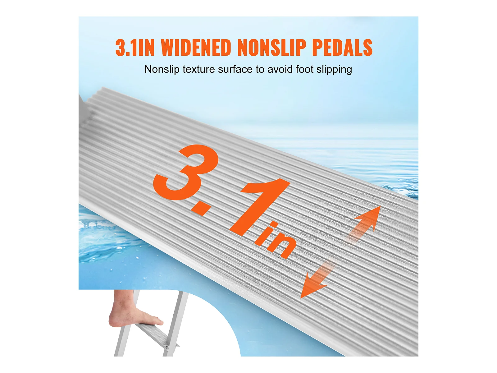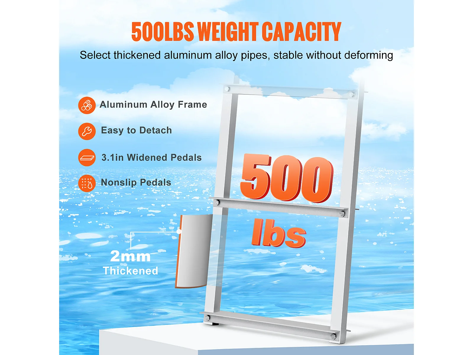 Échelle de Quai Rabattable en Aluminium SucceBuy, 4 Marches, Capacité de 159 kg, pour Embarquement à Bord de Bateaux, Lacs, Piscines