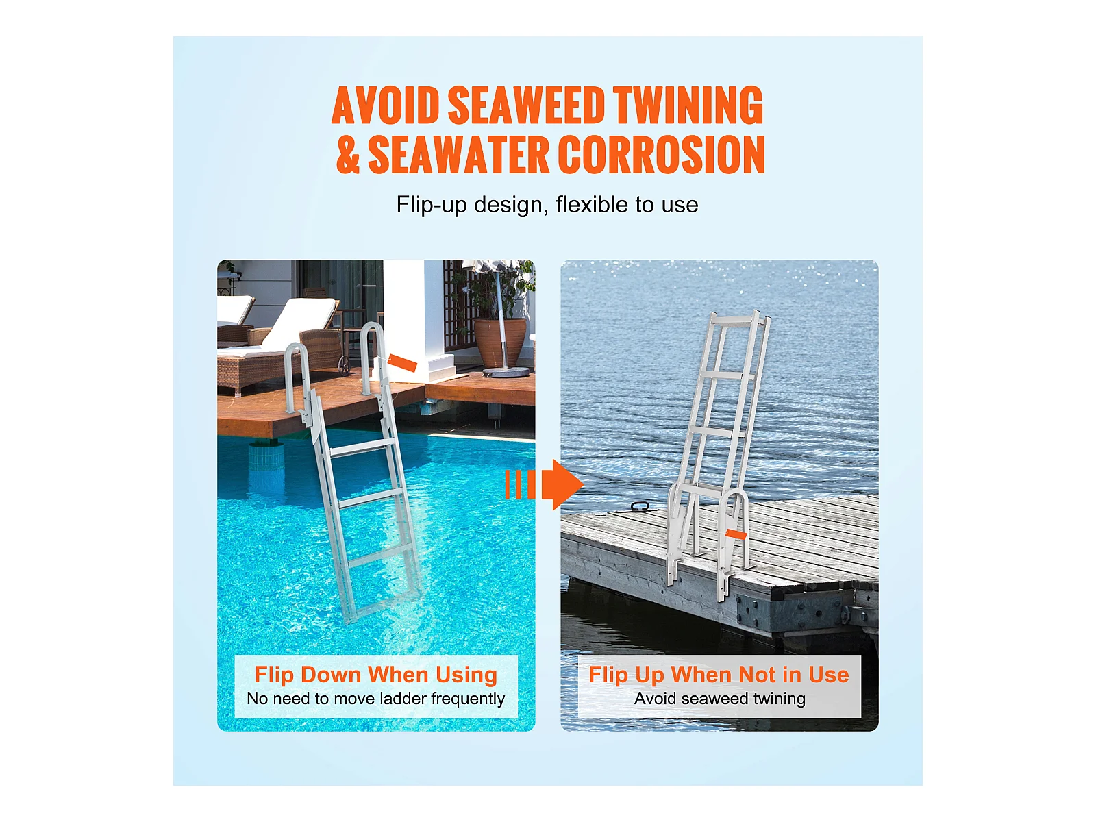 Échelle de Quai Rabattable en Aluminium SucceBuy, 4 Marches, Capacité de 159 kg, pour Embarquement à Bord de Bateaux, Lacs, Piscines