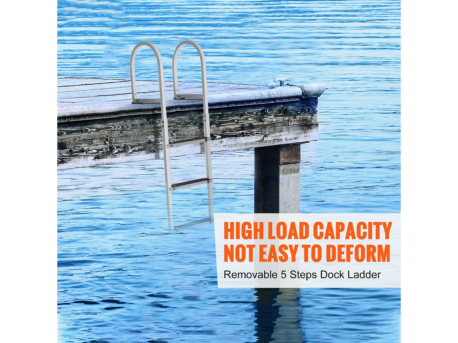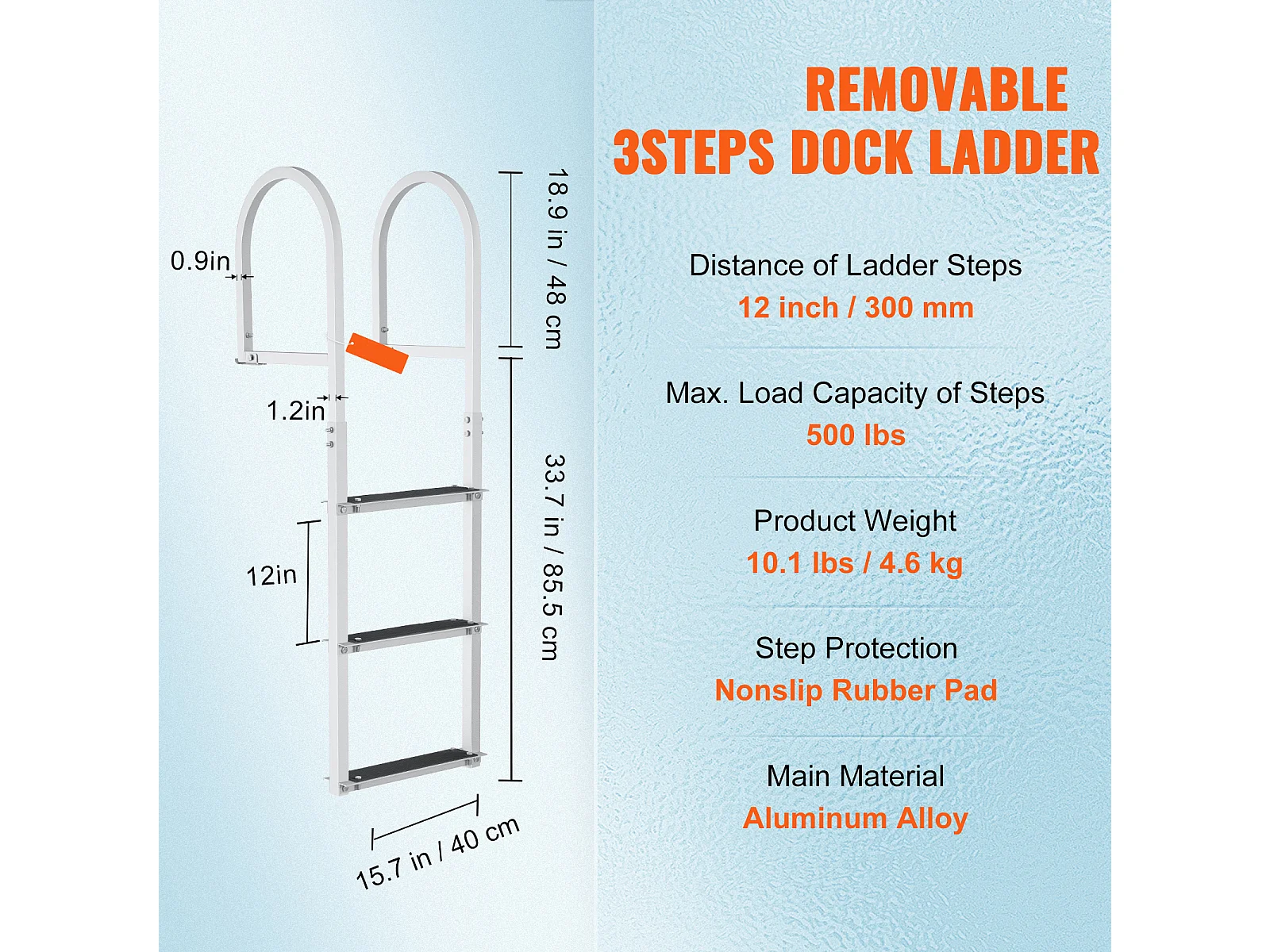 Échelle en Aluminium SucceBuy, Échelle de Quai, 3 Marches Amovibles, Capacité de Charge de 227 kg