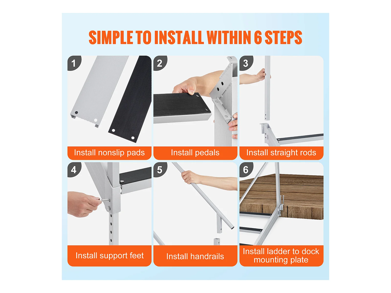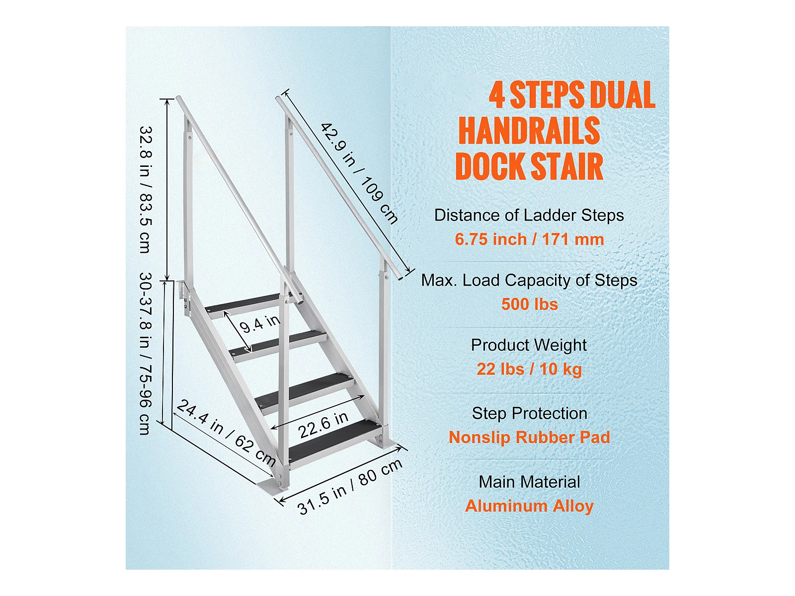 Échelle en Aluminium SucceBuy, Échelle de Quai, 4 Marches, 76 à 97 cm Réglable, Capacité de 227 kg