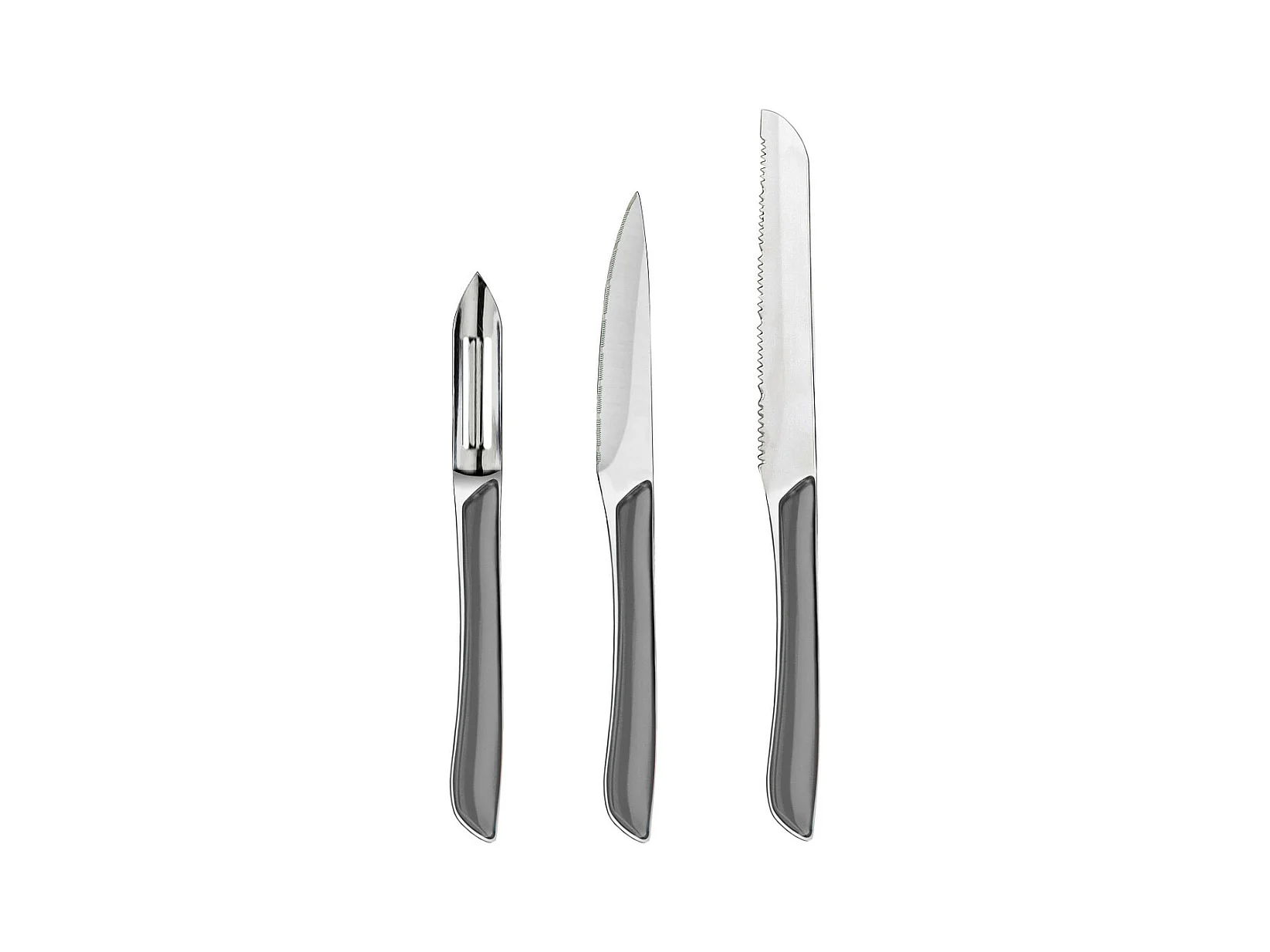 Eclat Gris - Set 3 couteaux : office, éplucheur, petits-légumes