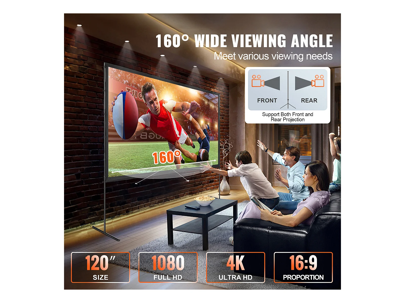 Écran de Projection SucceBuy sur Pied Portable, 305 cm, 16:9 HD Double Face Anti-Plis Grand Angle de Vision, pour Vidéoprojecteurs Cinéma Maison