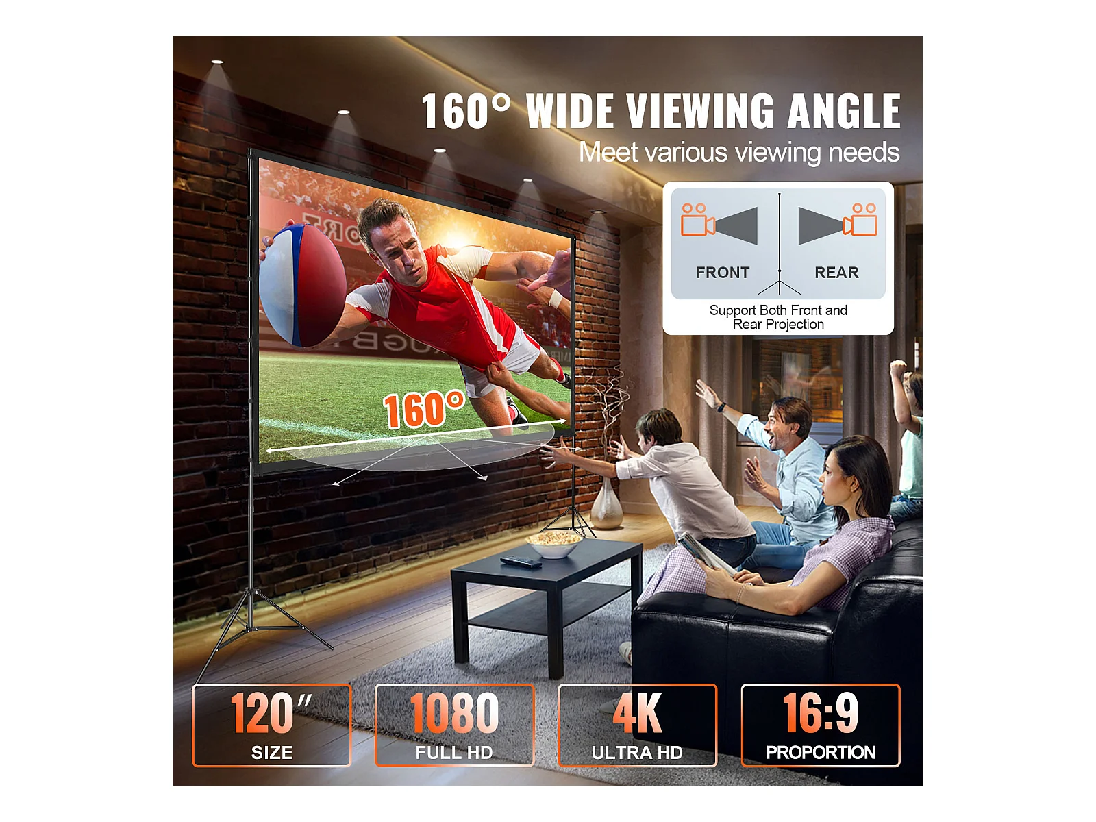 Écran de Projection SucceBuy sur Pied Portable, 305 cm, 16:9 HD Double Face Anti-Plis Grand Angle de Vision, pour Vidéoprojecteurs Cinéma Maison