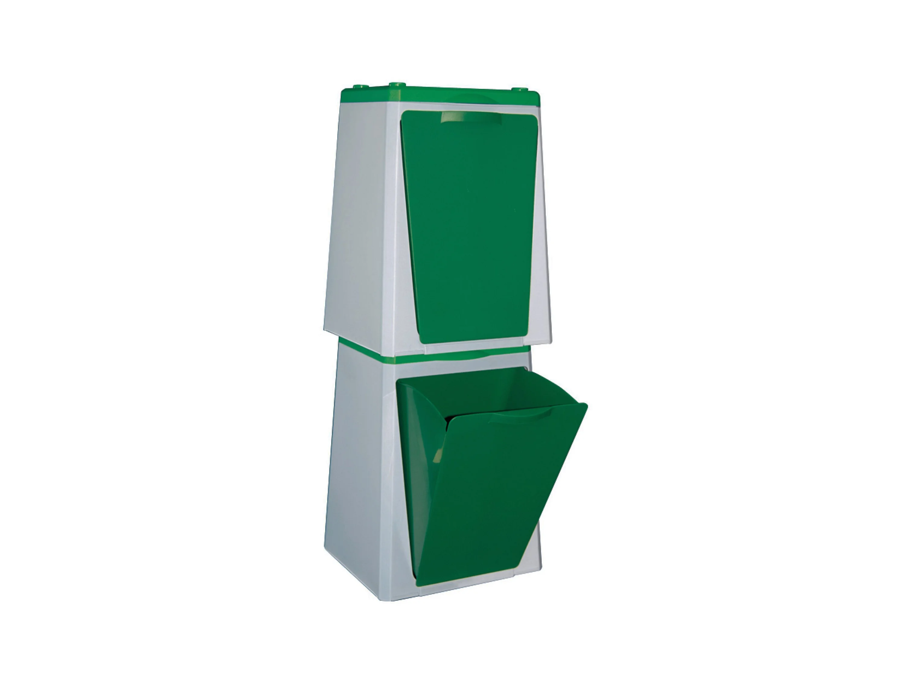 Recyclage Cube 45L Keden dans du plastique avec un couvercle ouvert vert. 39x39x65
