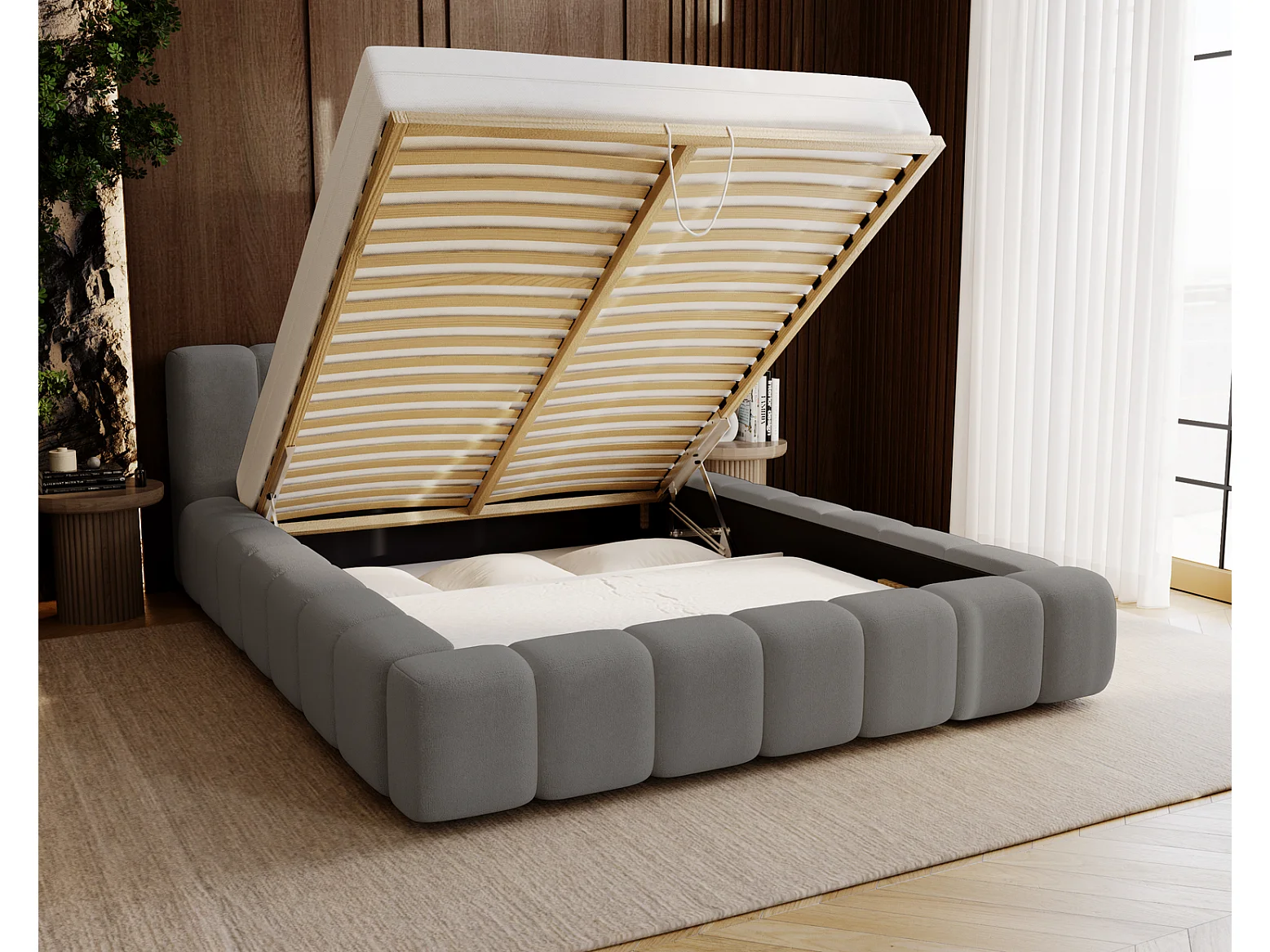 Emporius Bolonia lit adulte 140x200 cm - lit double 140x200 avec rangement, sommier à lattes - Gris (Komodo 21)