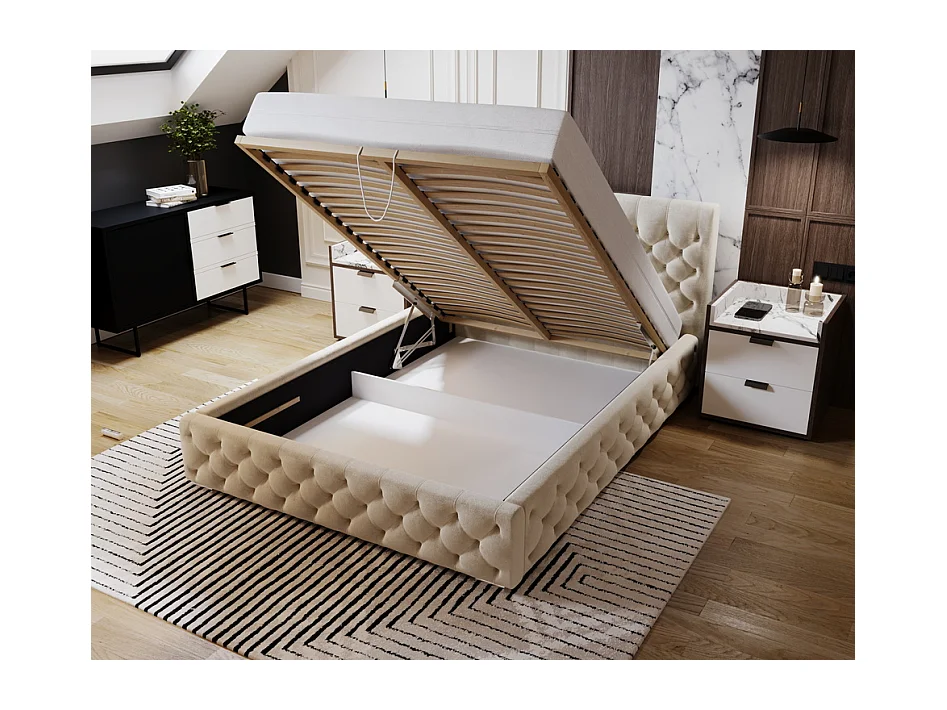 Emporius Lit double, lit adulte avec Rangement 200x200 cm Amare - Velour Gris (Komodo 21)