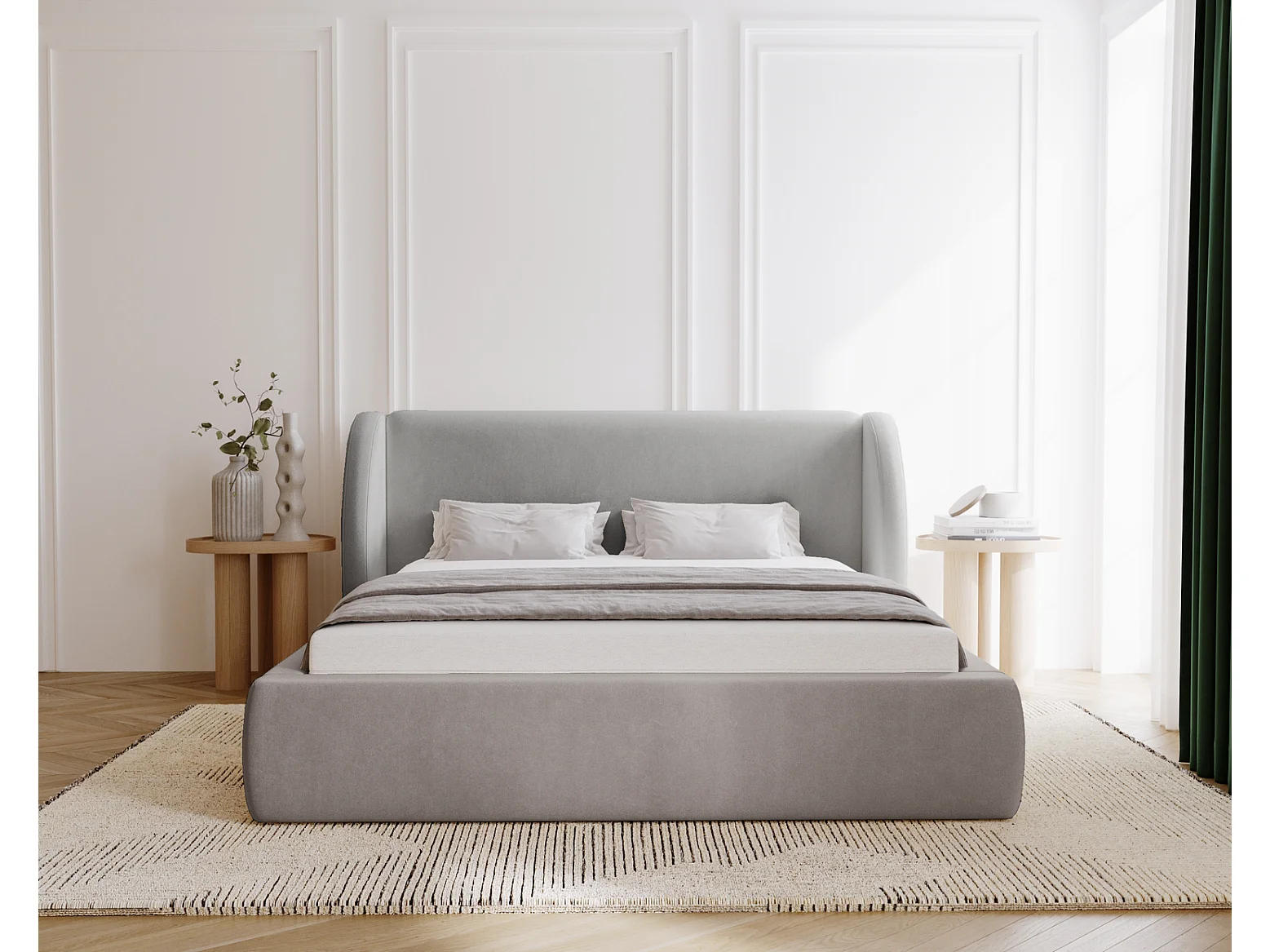 Emporius Lit double 160x200 Barcelona, Lit capitonné avec tête de lit arrondie, lit 160 x 200 Gris clair (Komodo 20)