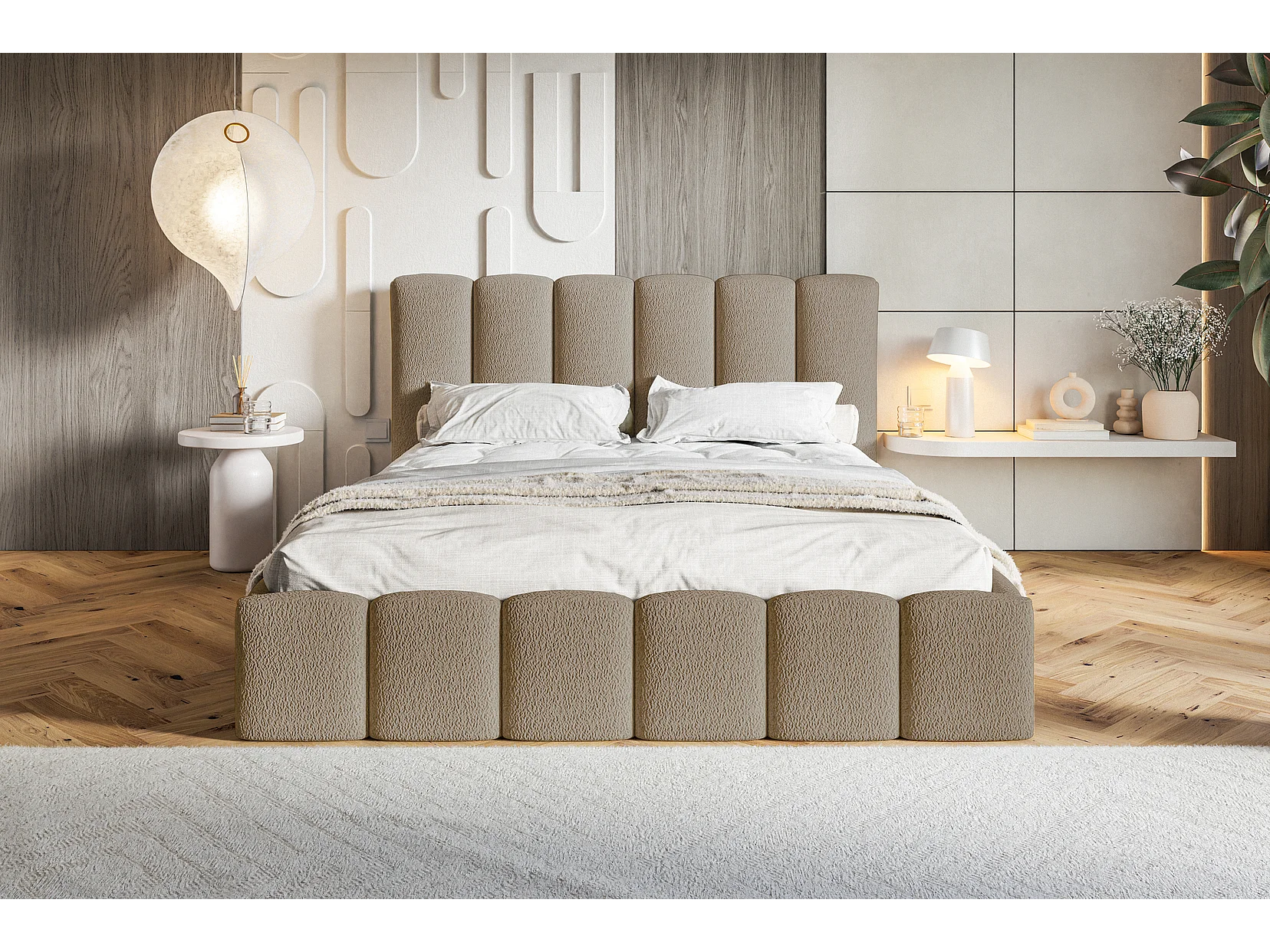 Lit rembourré 140x200 cm avec rangement Palermo - Lit double 140x200 cm, tissu bouclé Brun (Anthology 5)