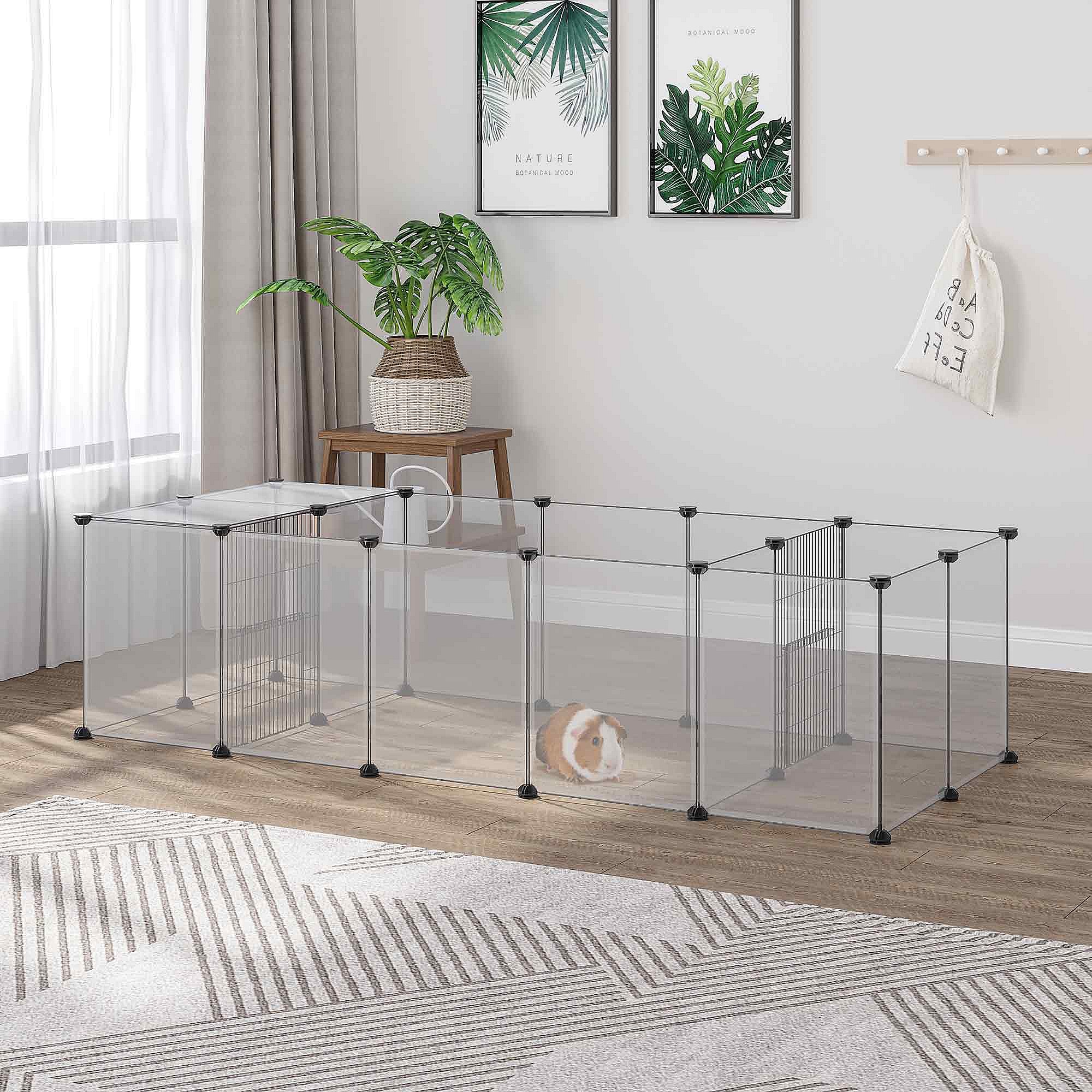 Enclos parc modulable petits animaux - 20 panneaux - dim. 175L x 70l x 45H cm - acier noir PP blanc