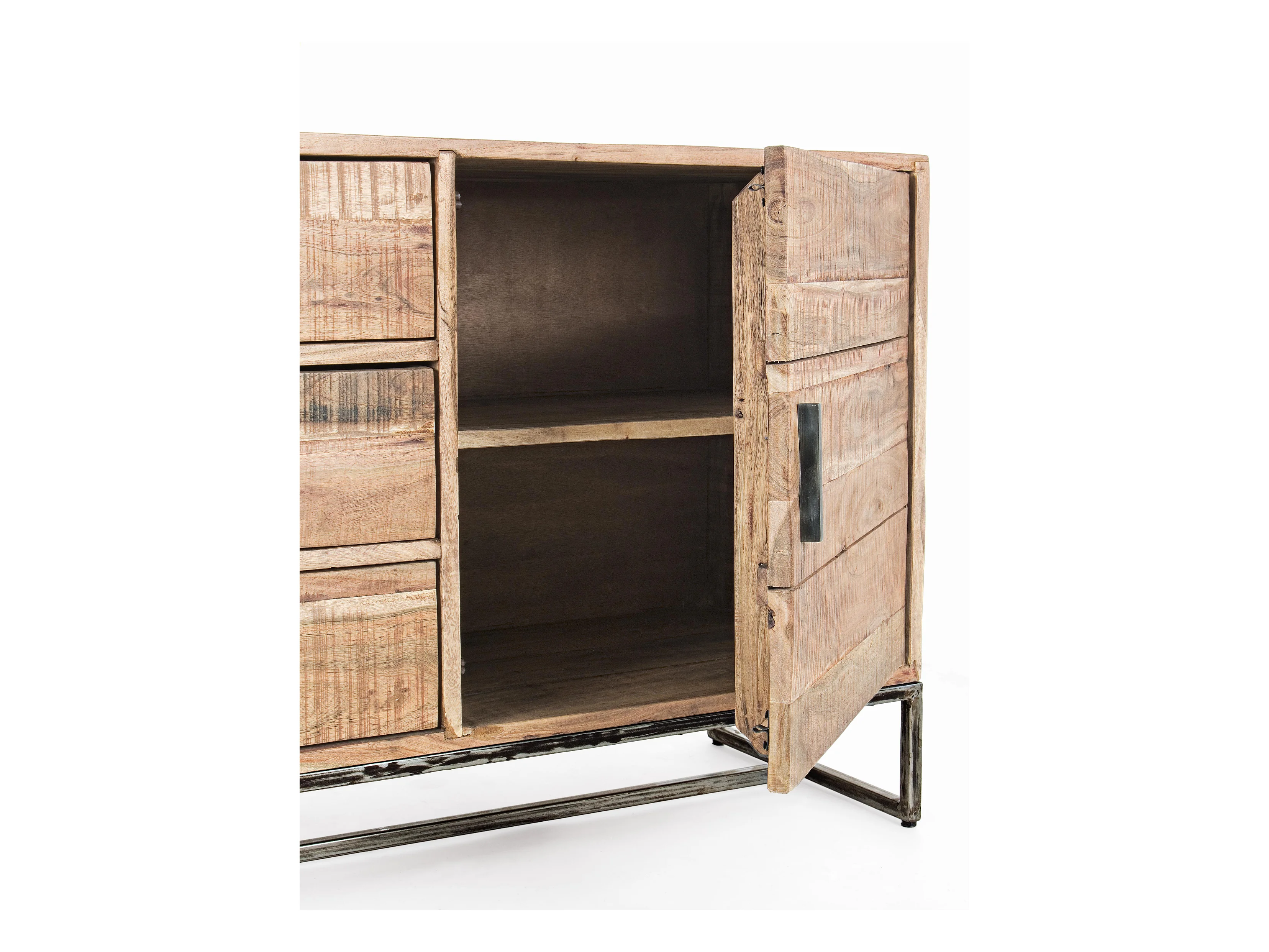Enfilade 2 portes 3 tiroirs bois d'acacia clair et pieds acier vieilli Kadone 175cm