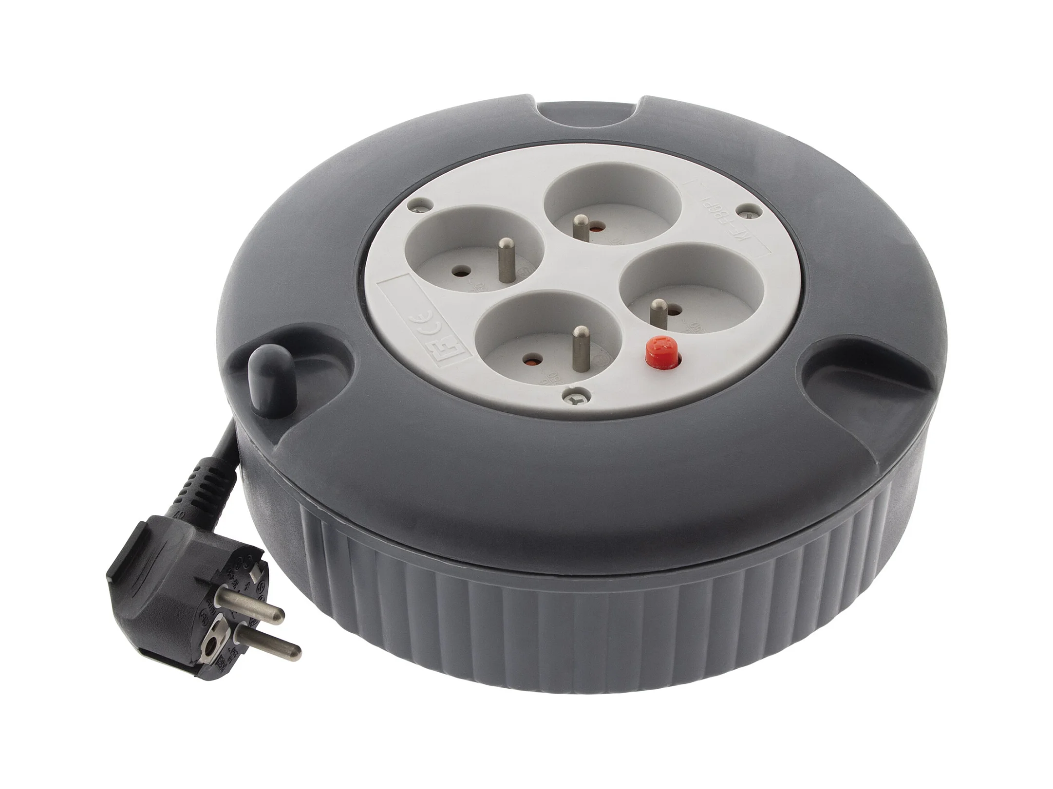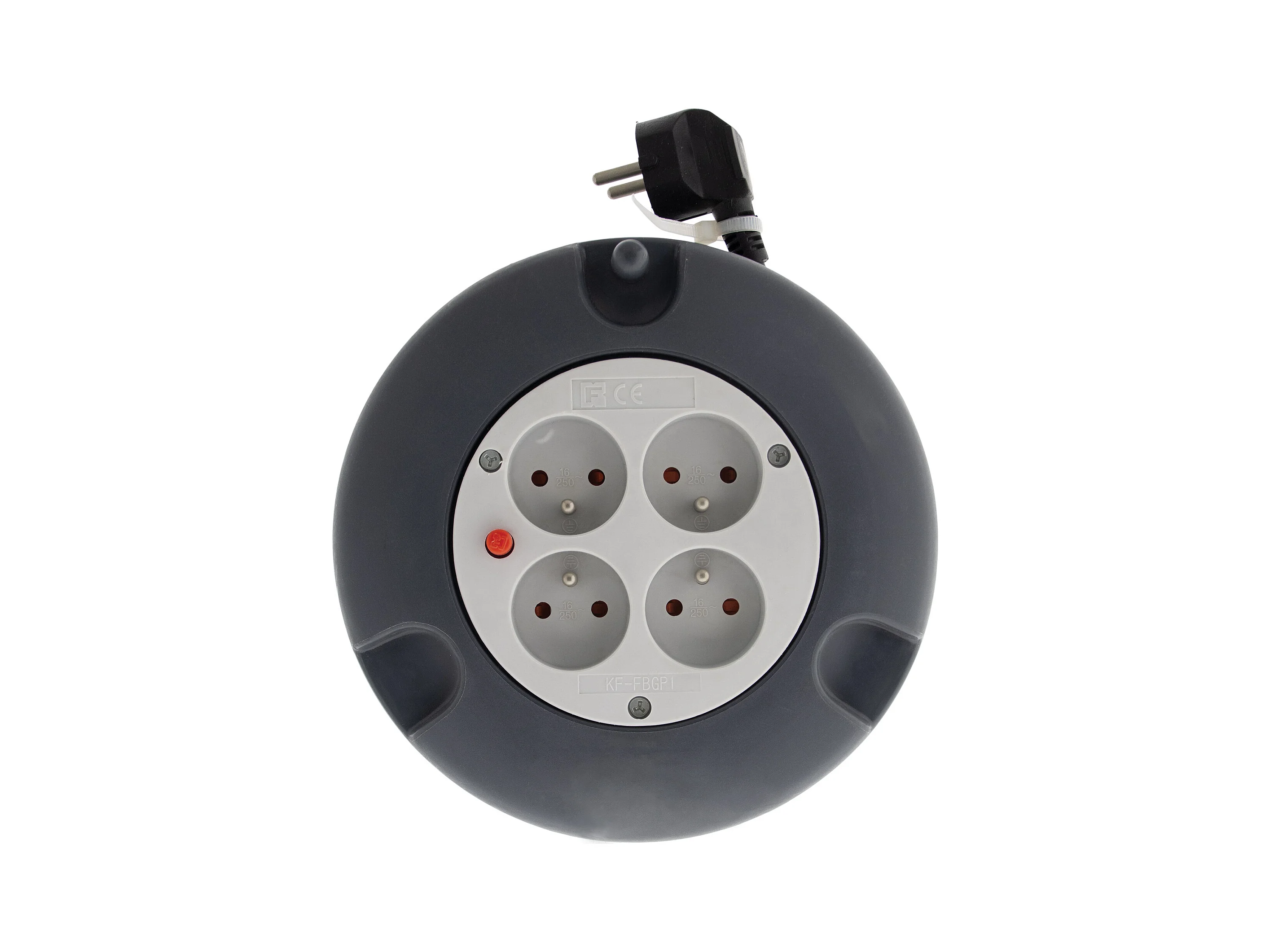 Enrouleur H05VV-F 4 prises 3G1,5mm² 4m + coupe-circuit - Gris - Zenitech