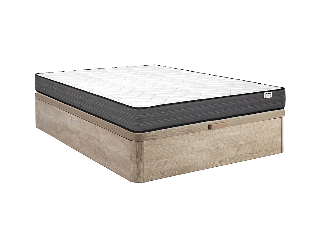 Ensemble 160 x 200 cm sommier coffre naturel clair + matelas ressorts ensachés ép.20cm - AMBRACIE de YSMÉE