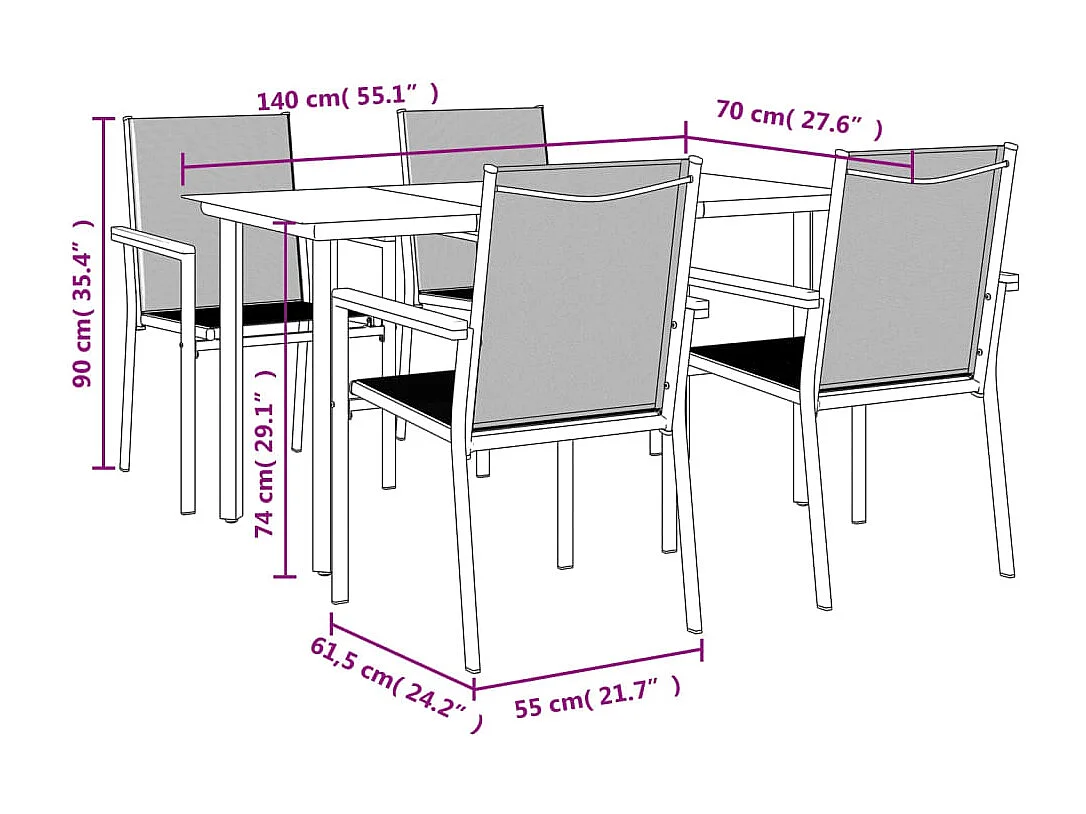 Ensemble à manger de jardin 5 pcs noir textilène et acier
