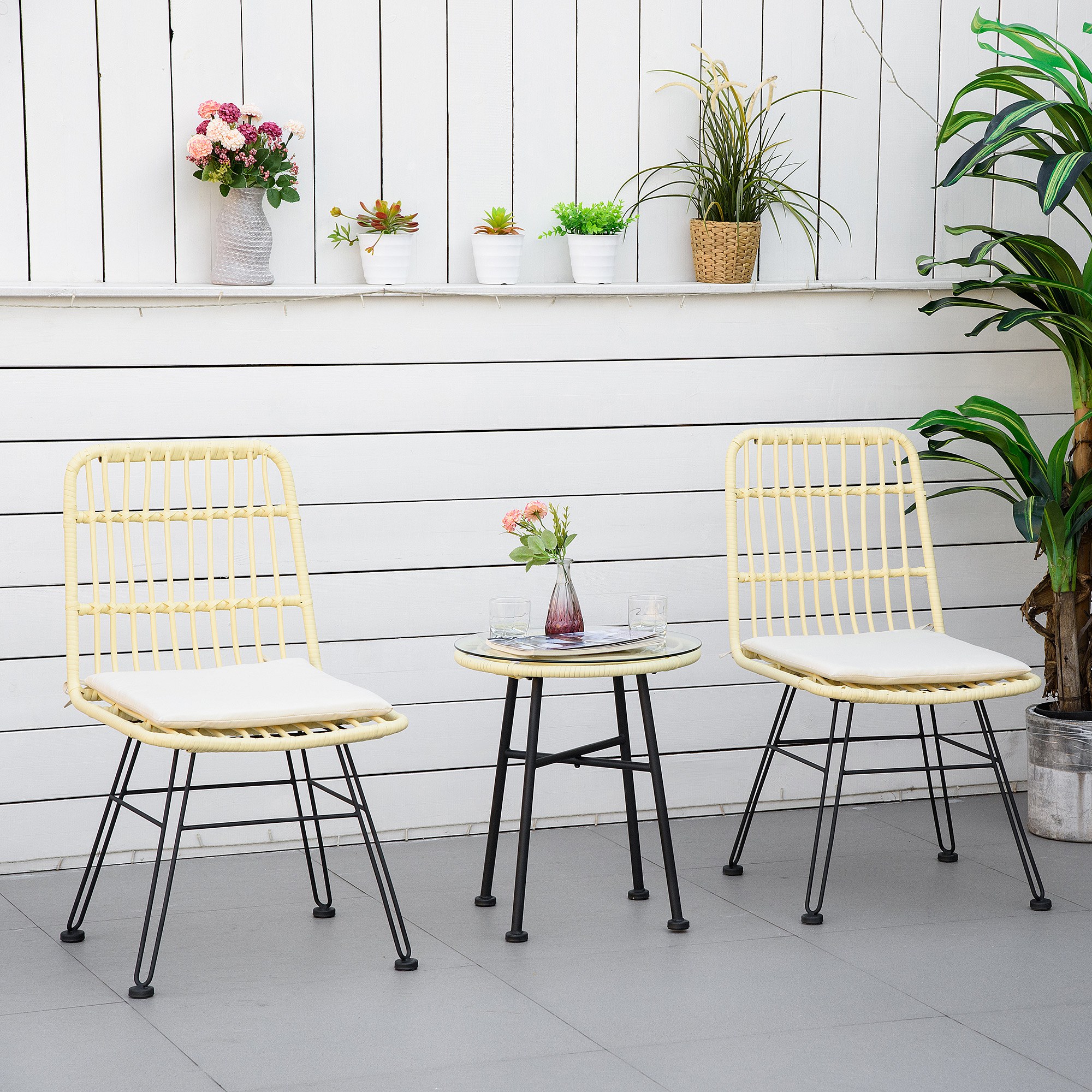 Ensemble bistro de jardin 2 places 3 pièces style exotique 2 chaises + table basse ronde métal époxy noir résine tressée beige