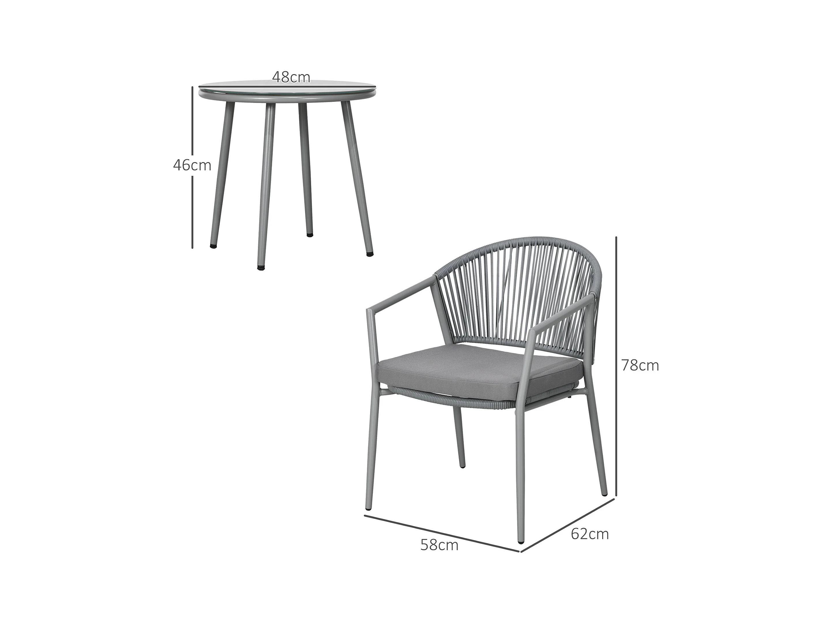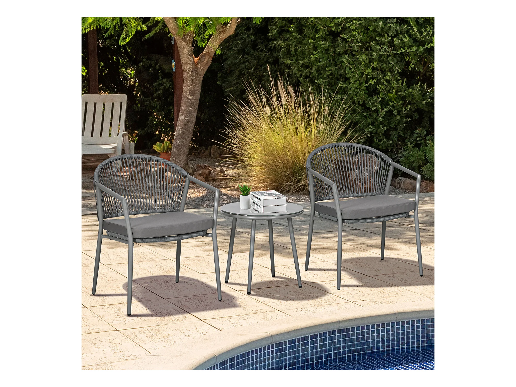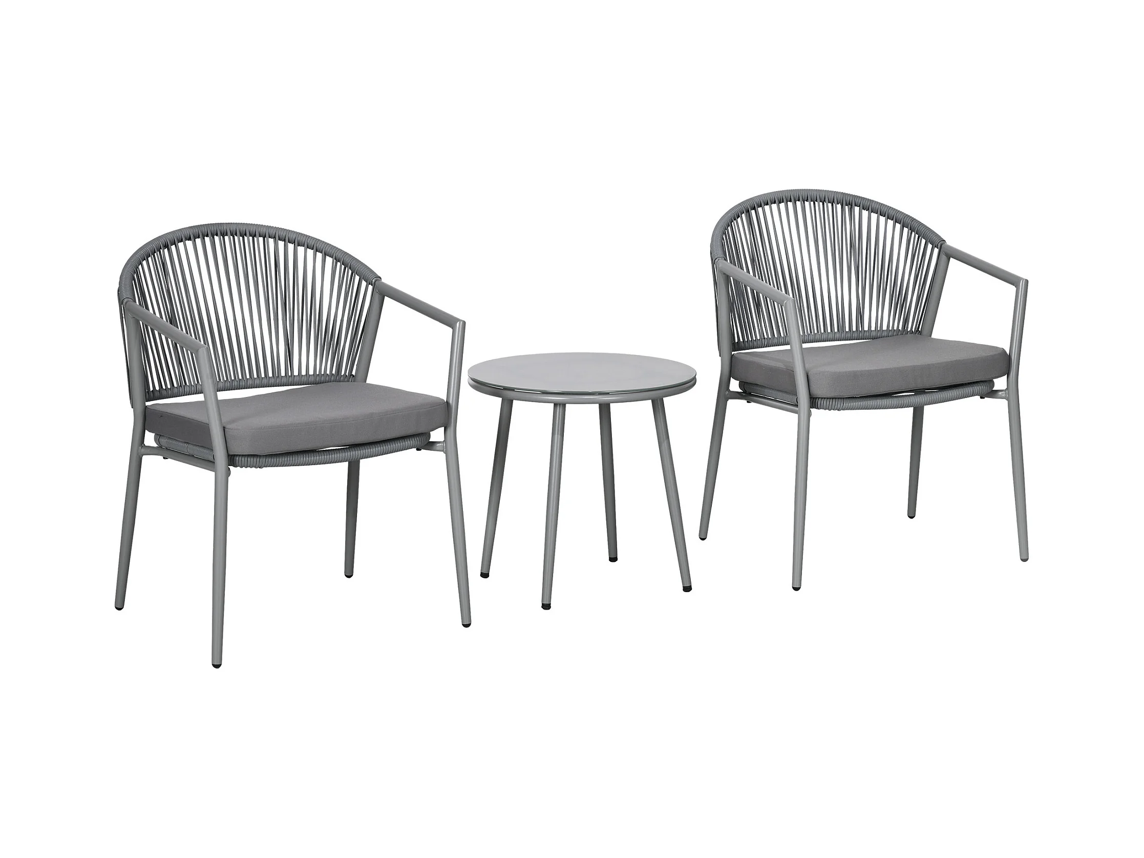 Ensemble bistrot de jardin 3 pcs 2 fauteuils table basse coussins gris