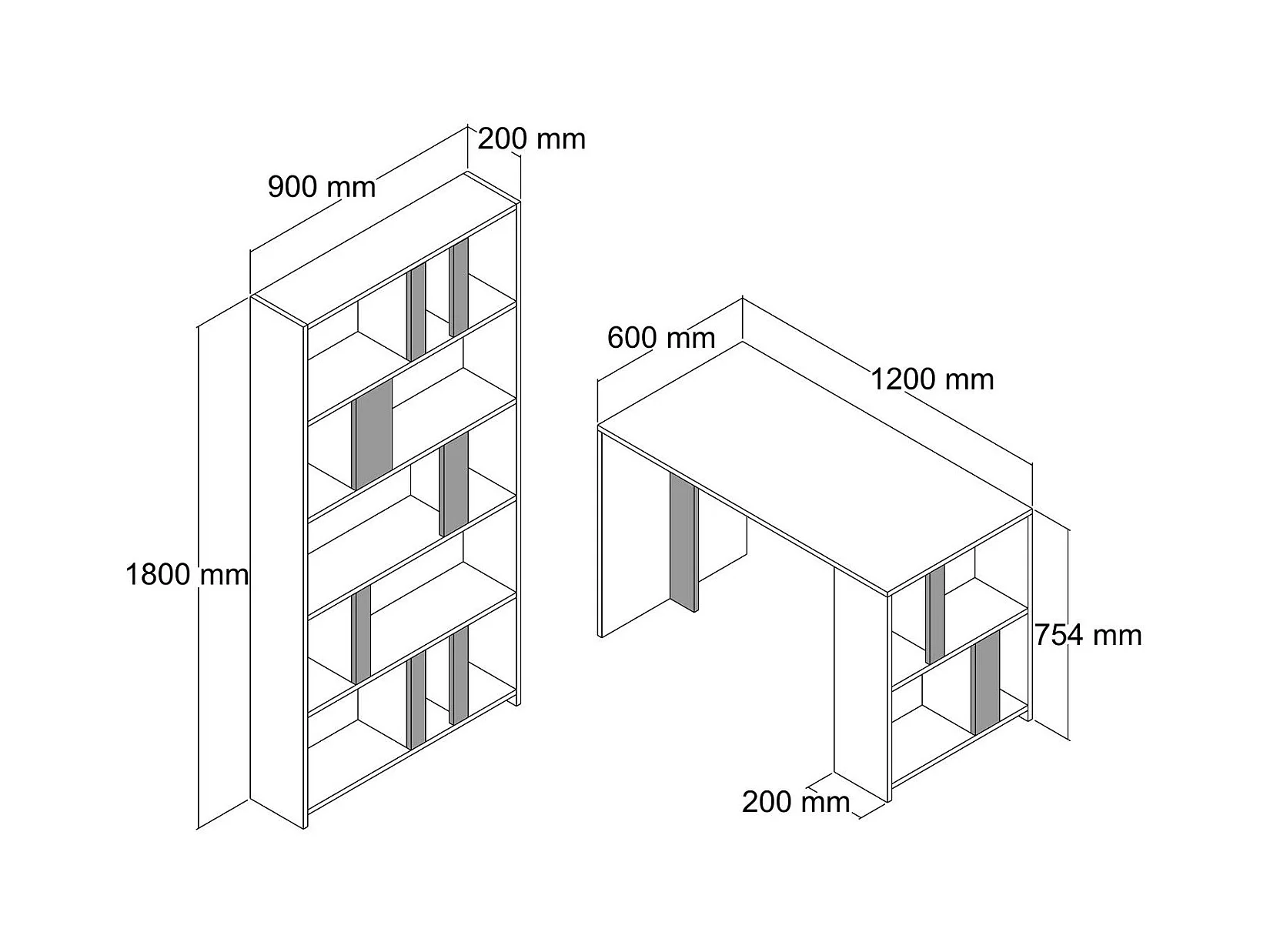 Ensemble bureau et bibliothèque Officium Bois Naturel et Noir effet marbre