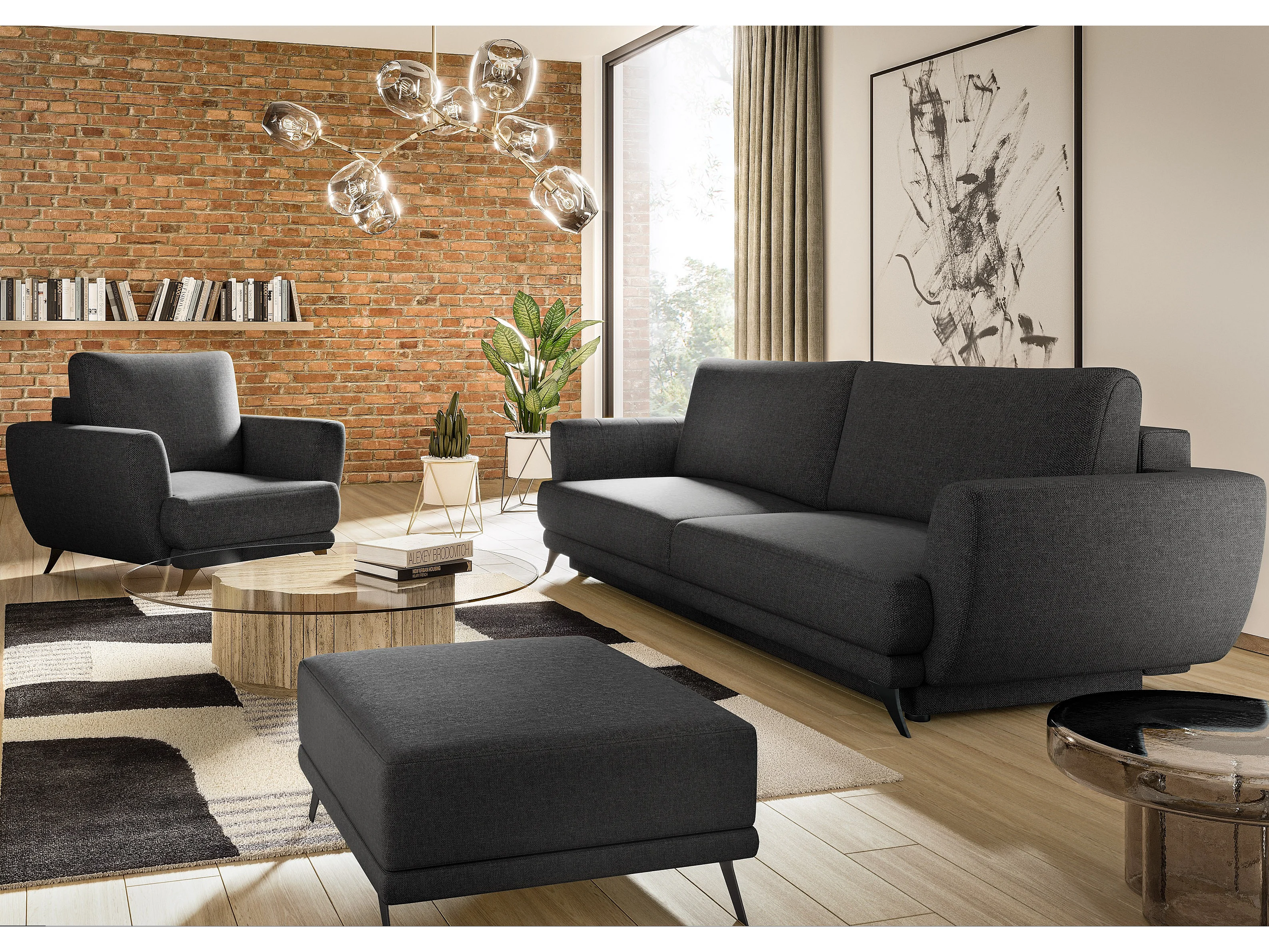 Ensemble canapé convertible tissu anthracite Zora - 1 canapé 3 places + 1 fauteuil + 1 pouf