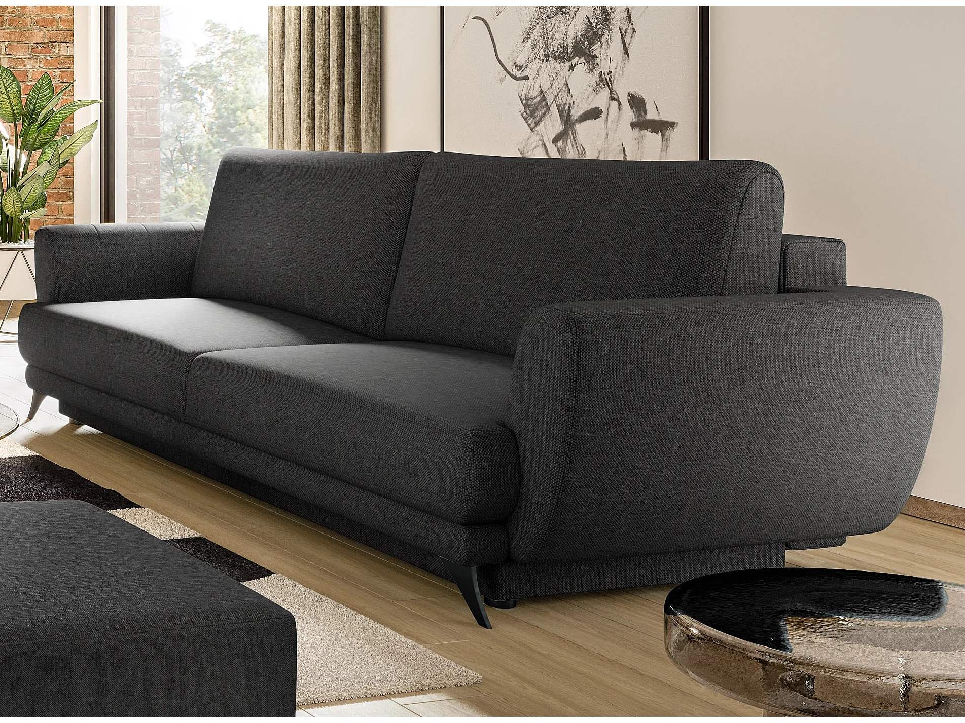 Ensemble canapé convertible tissu gris foncé Zora - 1 canapé 3 places + 1 fauteuil + 1 pouf