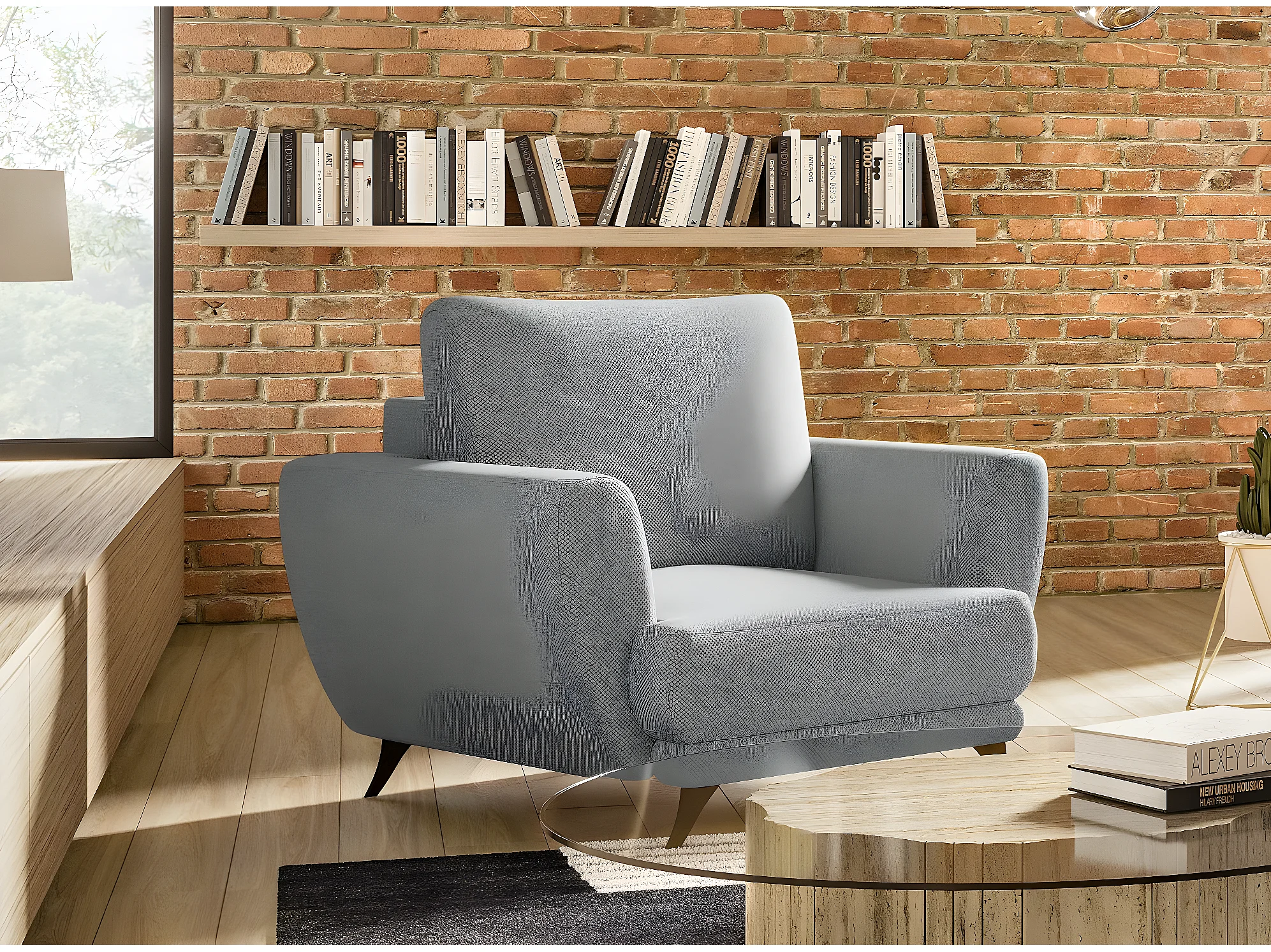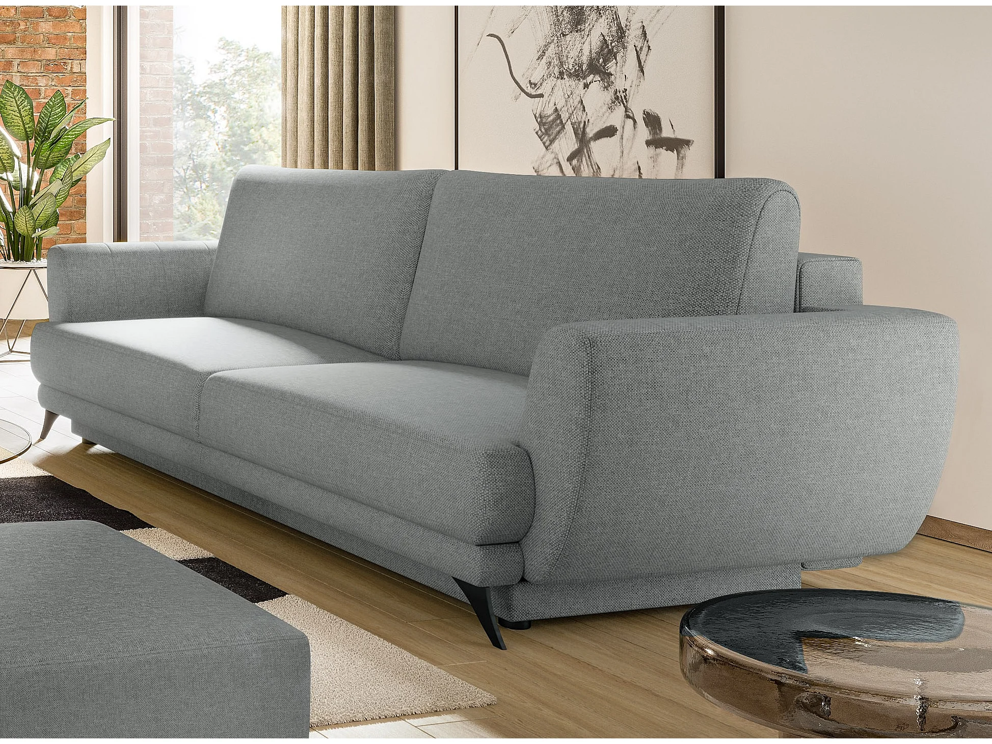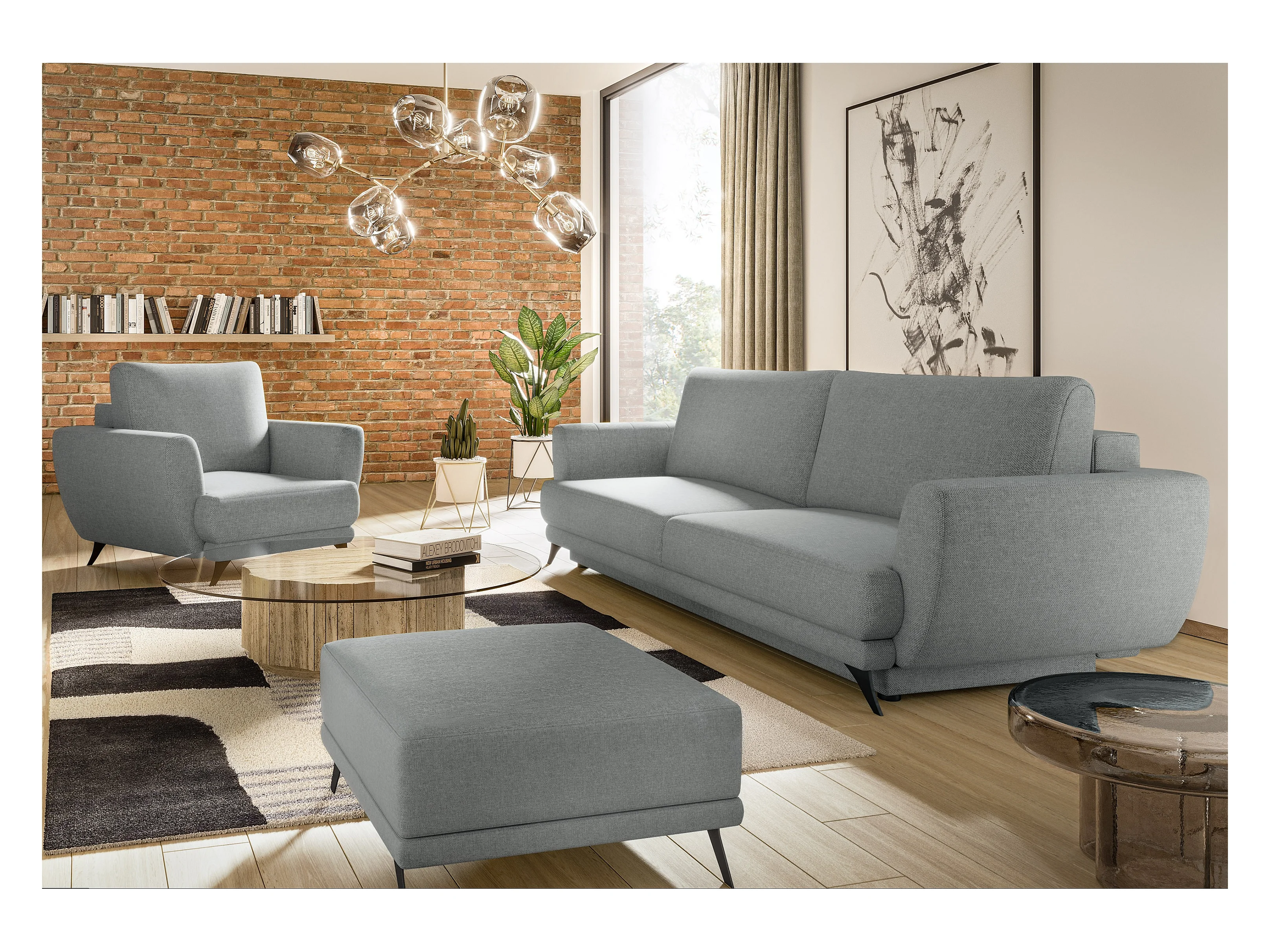 Ensemble canapé convertible tissu gris clair Zora - 1 canapé 3 places + 1 fauteuil + 1 pouf