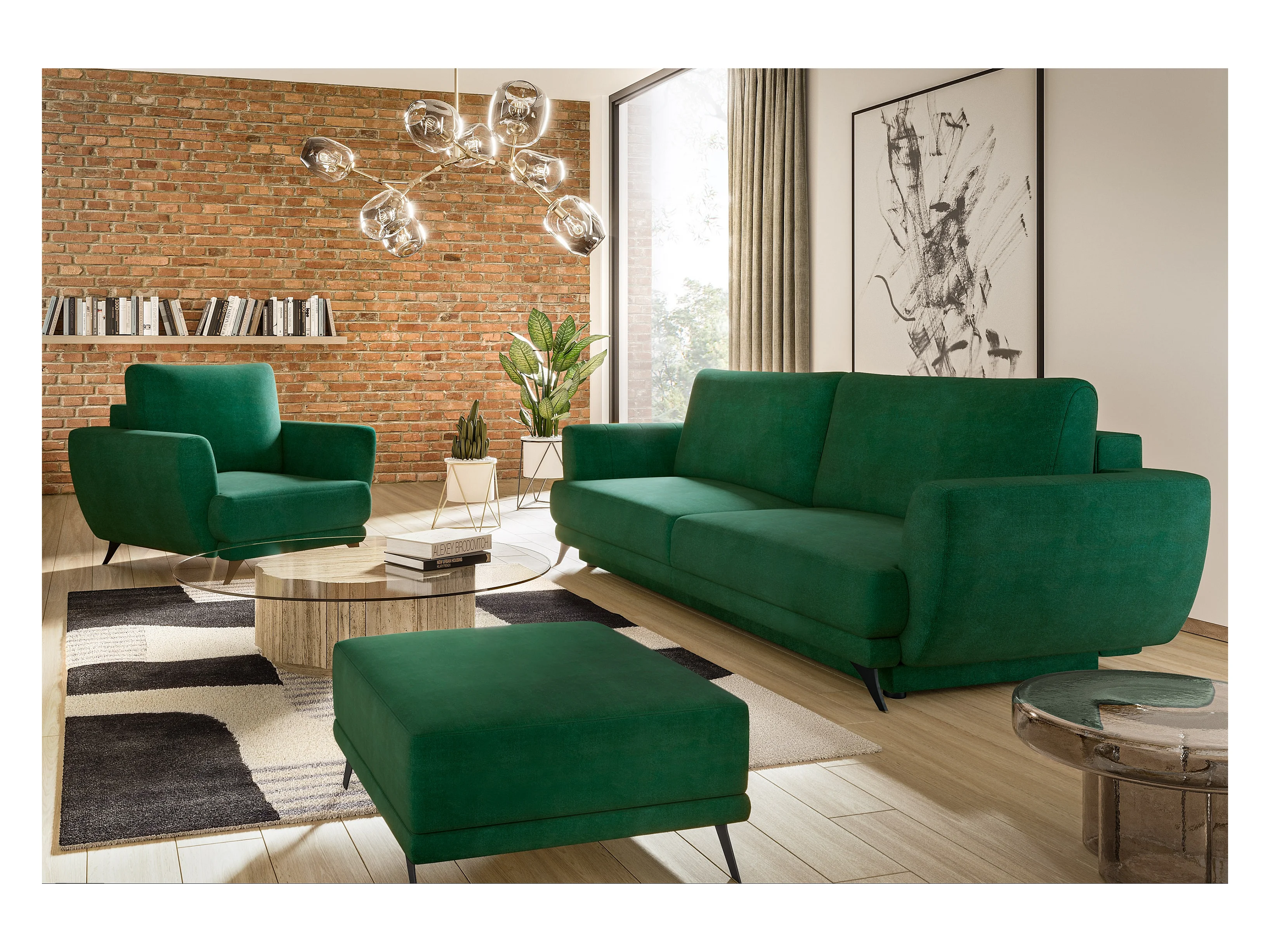 Ensemble canapé convertible velours vert Zora - 1 canapé 3 places + 1 fauteuil + 1 pouf