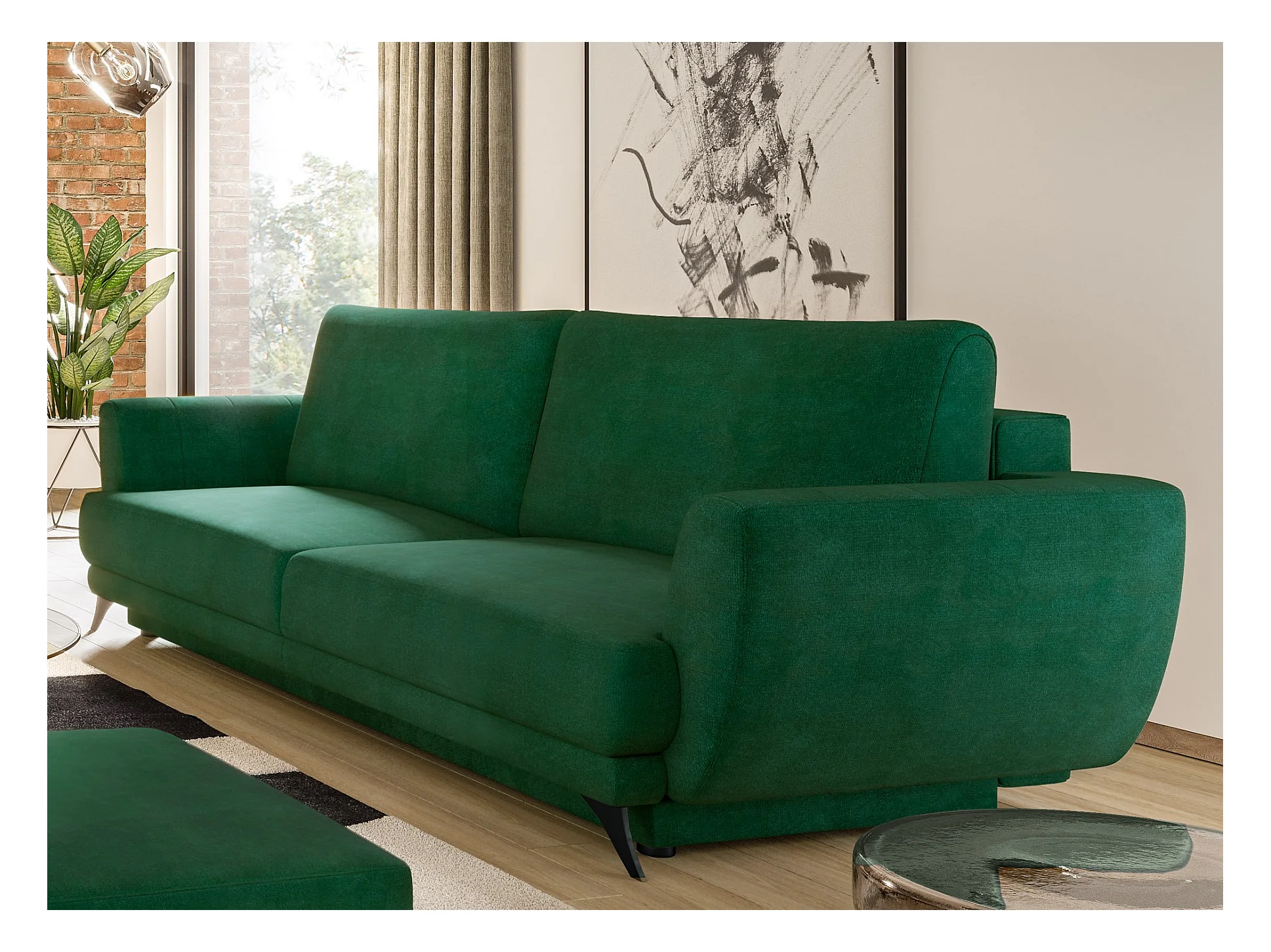 Ensemble canapé convertible tissu vert Zora - 1 canapé 3 places + 1 fauteuil + 1 pouf