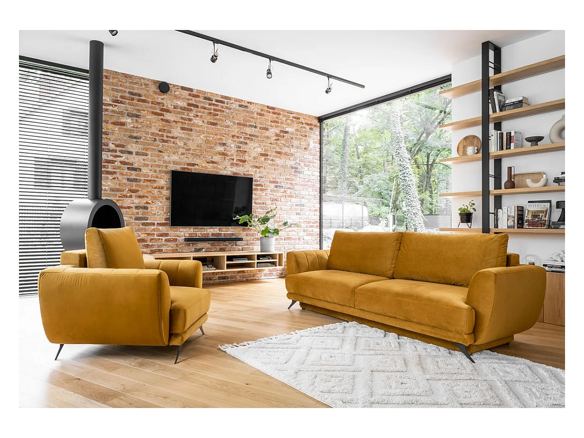 Ensemble canapé convertible velours marron Zora - 1 canapé 3 places + 1 fauteuil + 1 pouf