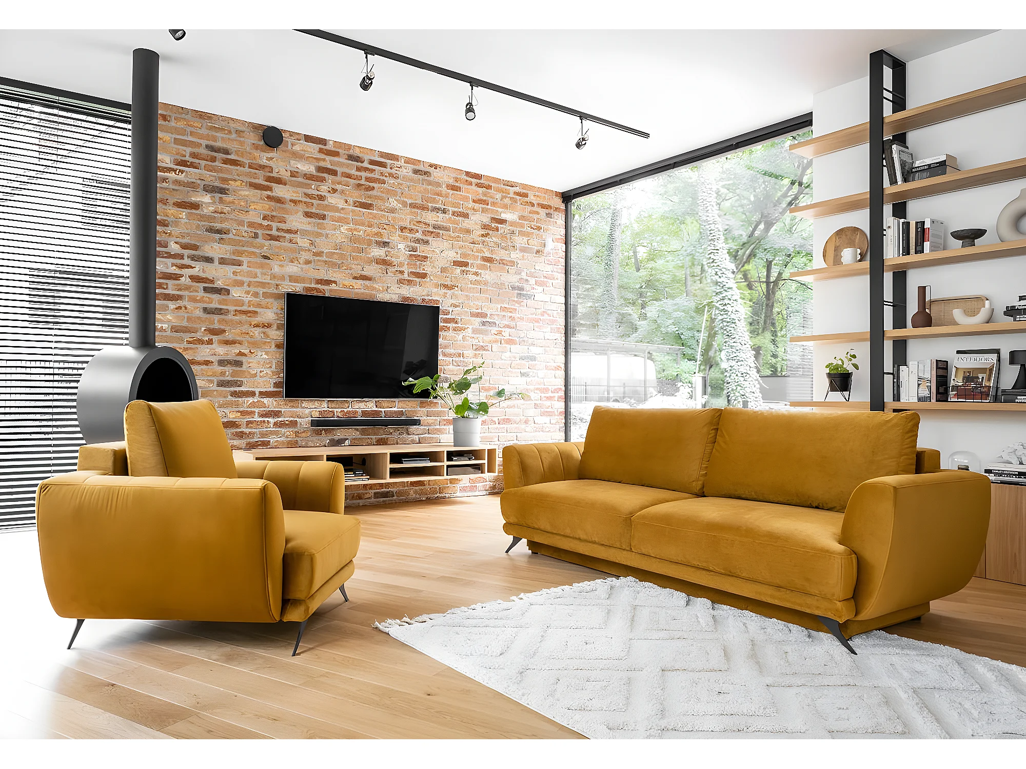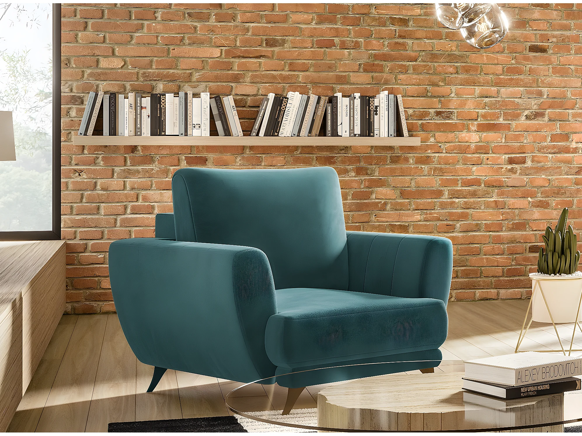 Ensemble canapé convertible velours vert Zora - 1 canapé 3 places + 1 fauteuil + 1 pouf