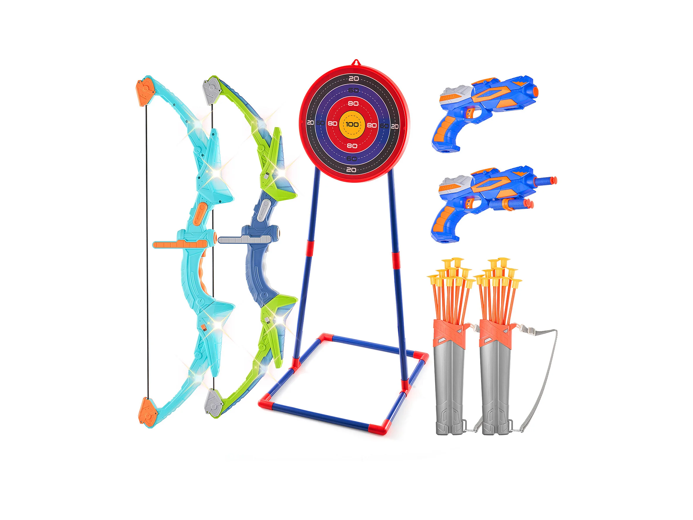 Ensemble d'Arc et de Flèches pour Enfants SucceBuy, Lot de 2, Ensemble de Tir à l'Arc Lumineux à LED avec 20 Flèches à Ventouse