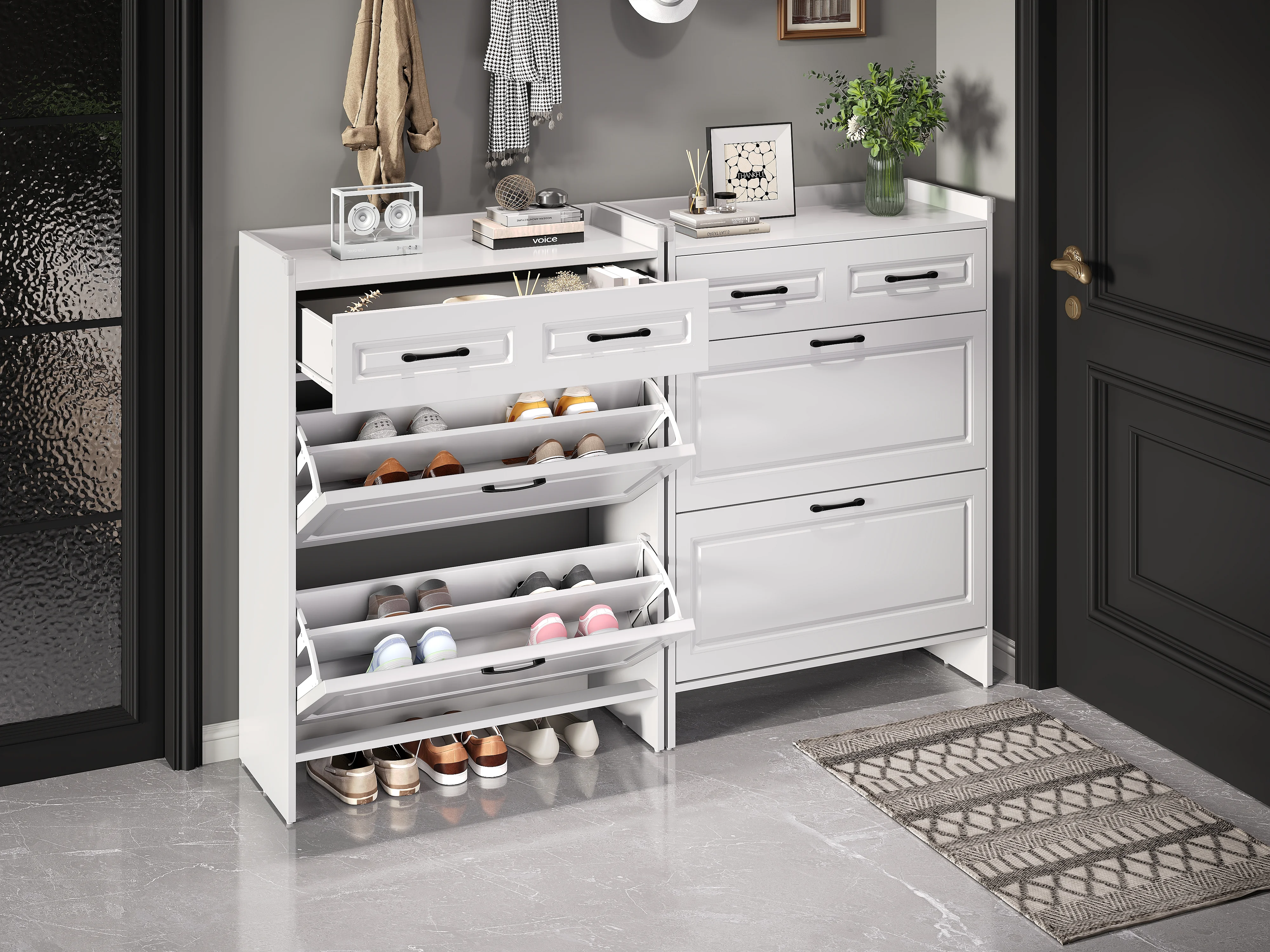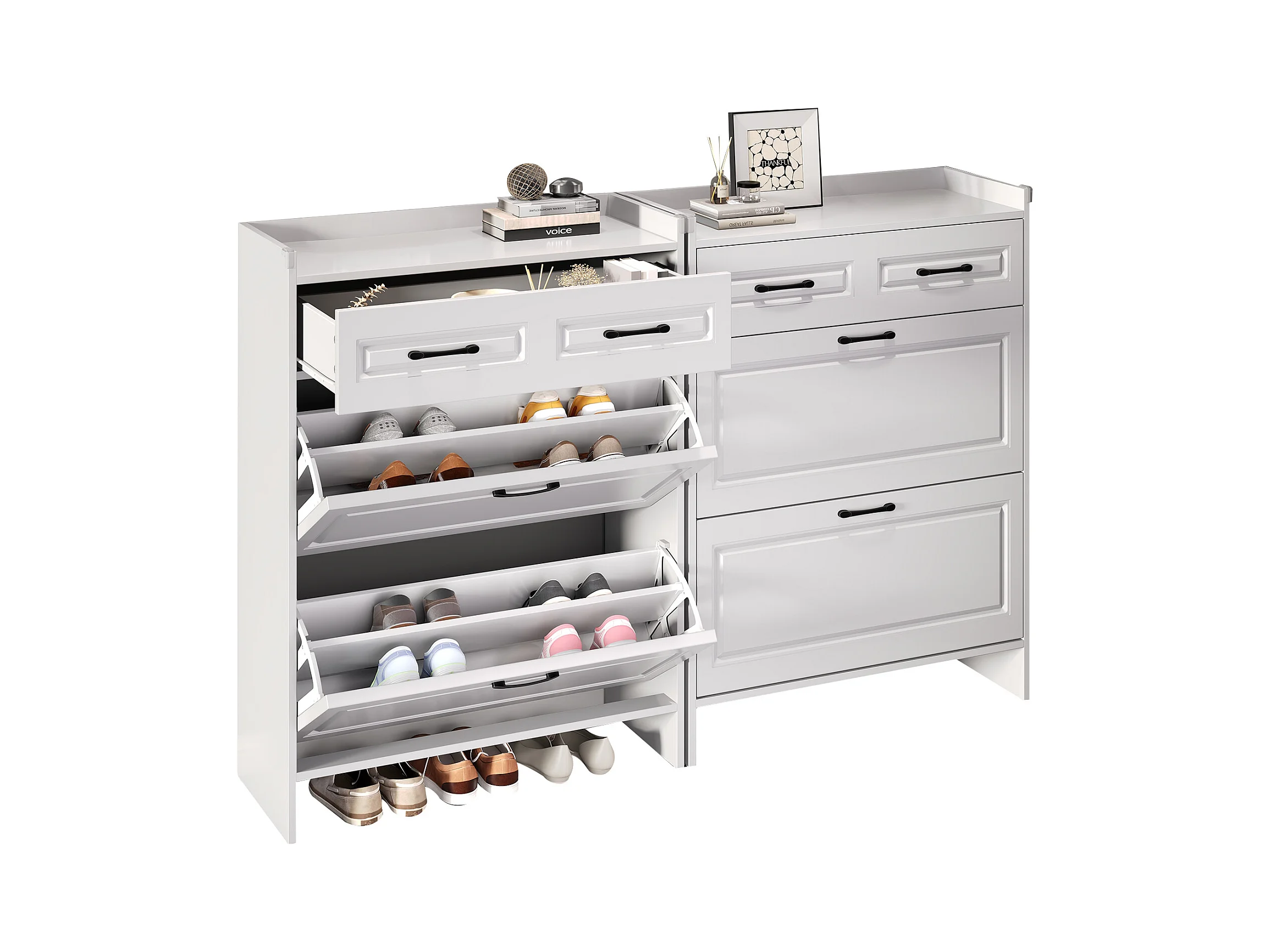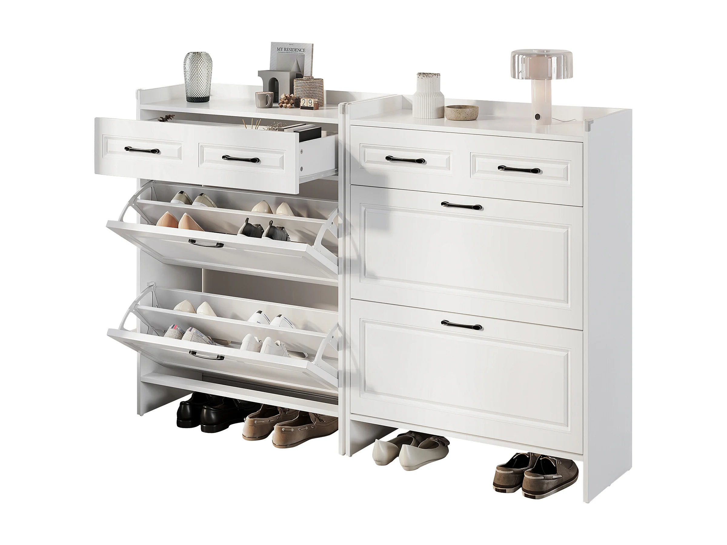 Ensemble de 2 meuble à chaussures avec 8 compartiments + 2 tiroirs - 80 x 34 x 107.5 cm - MDF - blanc