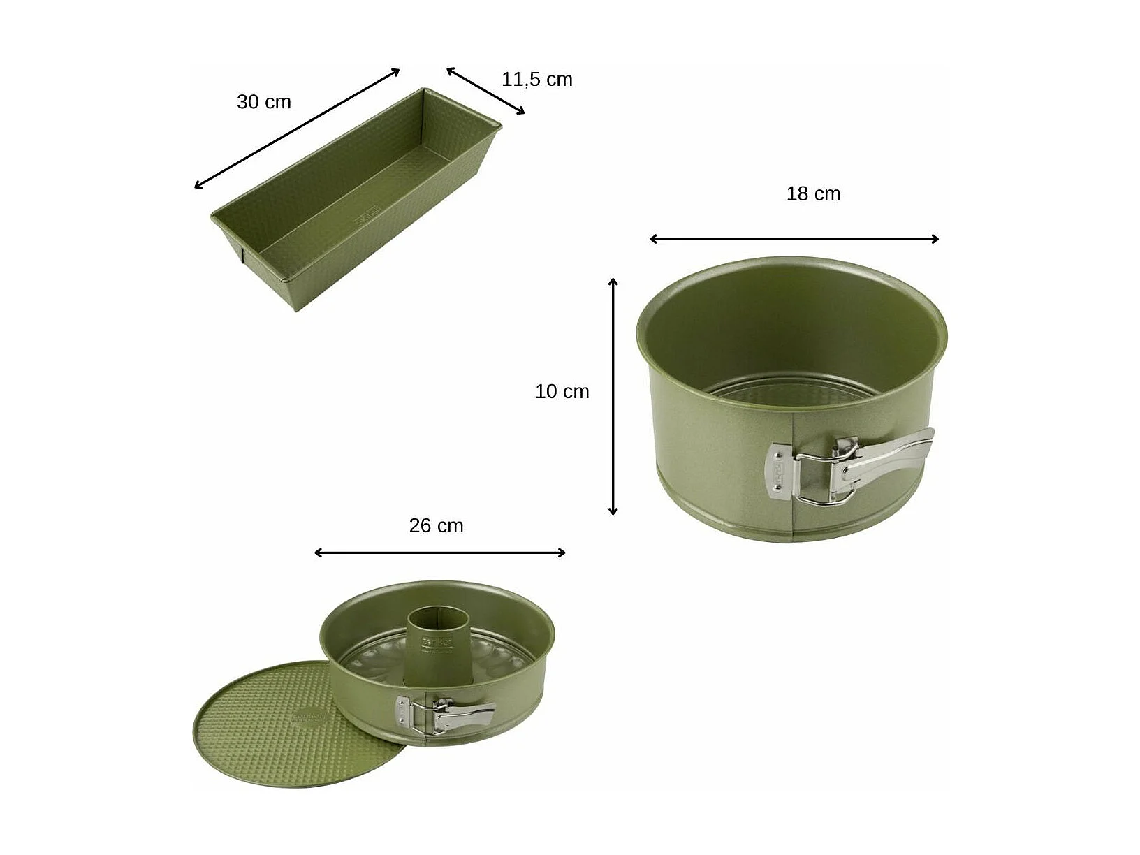 Ensemble de 3 moules à gâteaux de 18 à 30 cm Zenker Green Vision