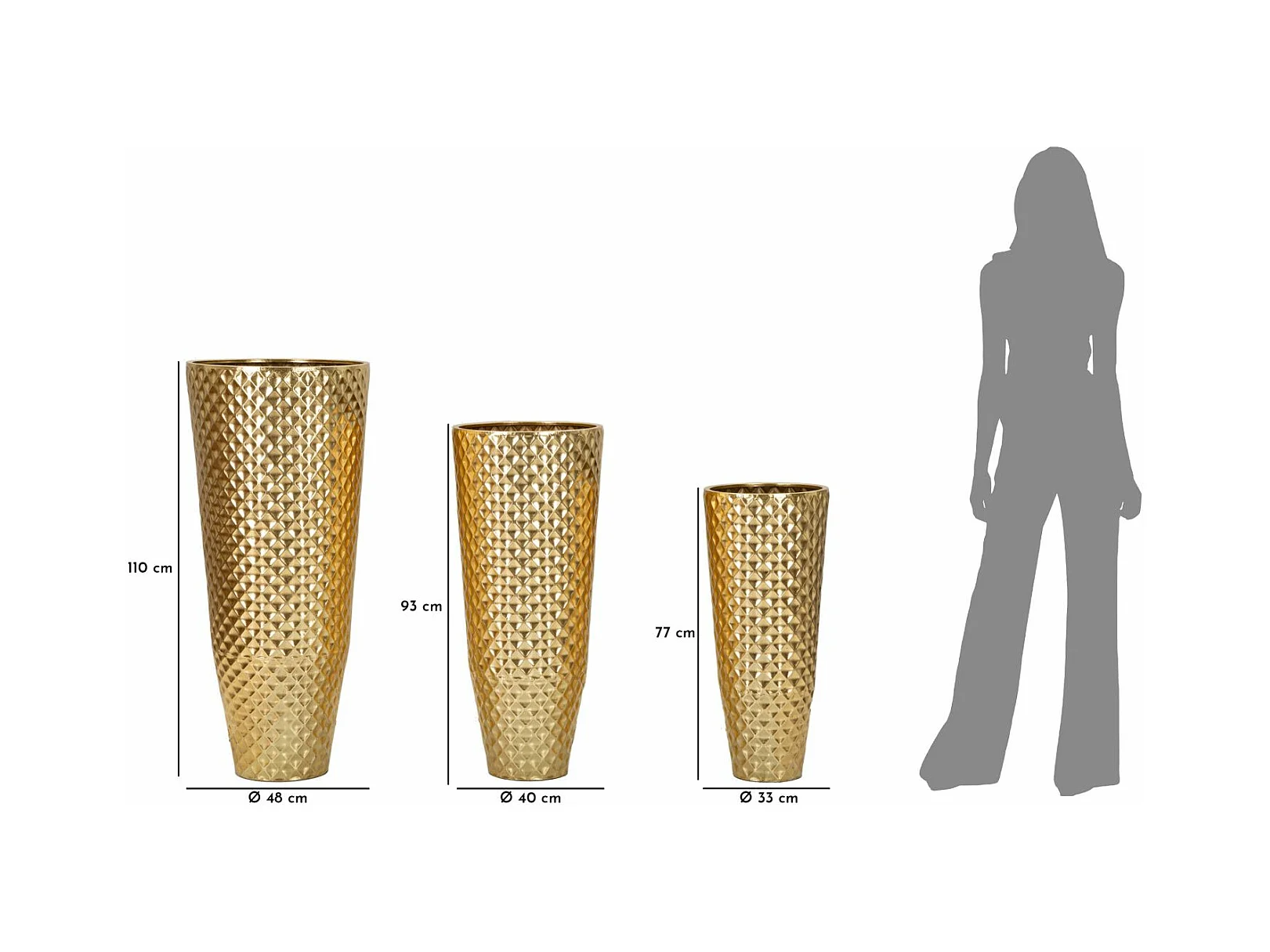 Lot de 3 Vases en Métal "Glotty" 110cm Or