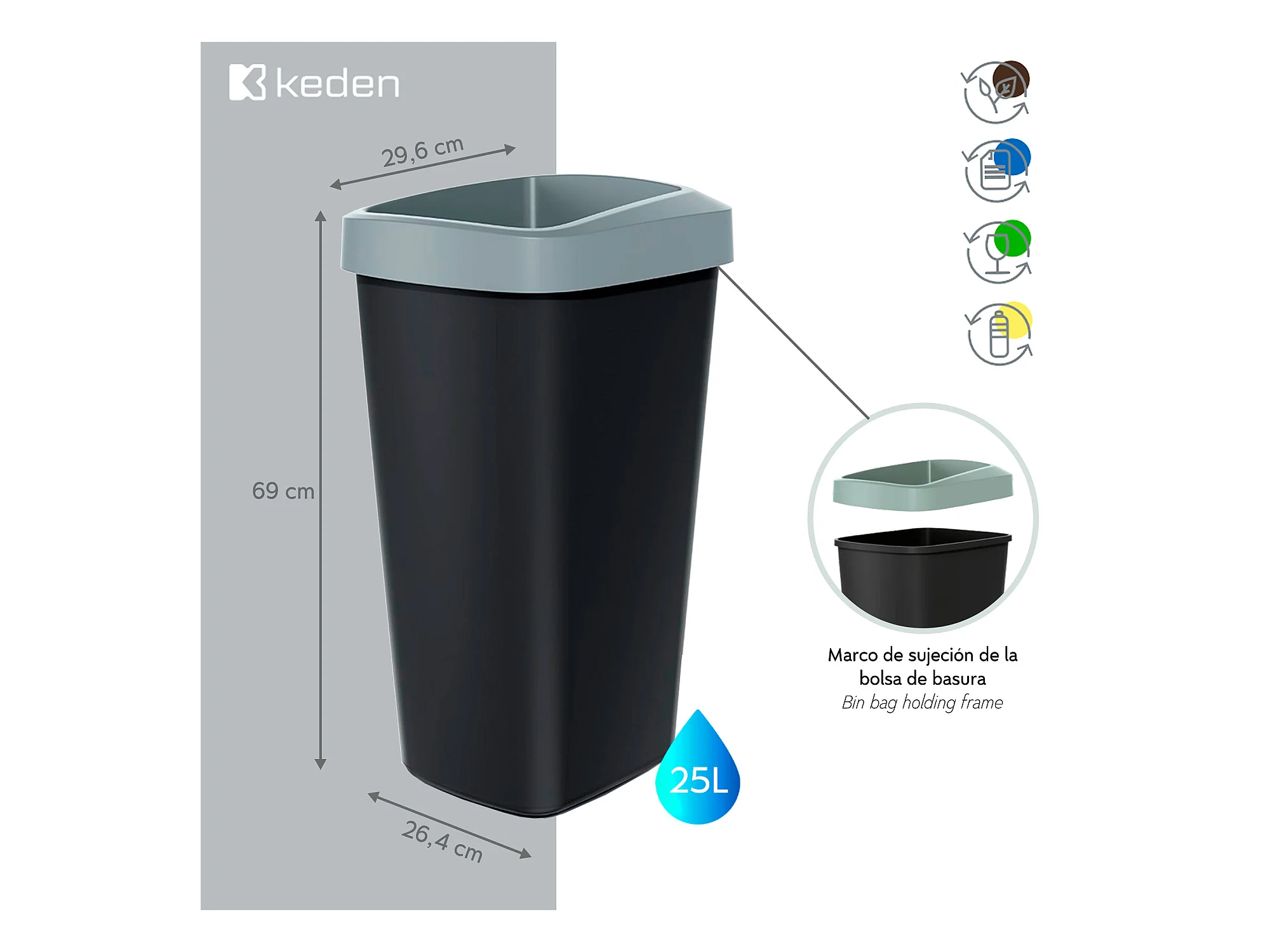 Ensemble de 3 cubes de recyclage de 25L chaque Keden. 29x26x63