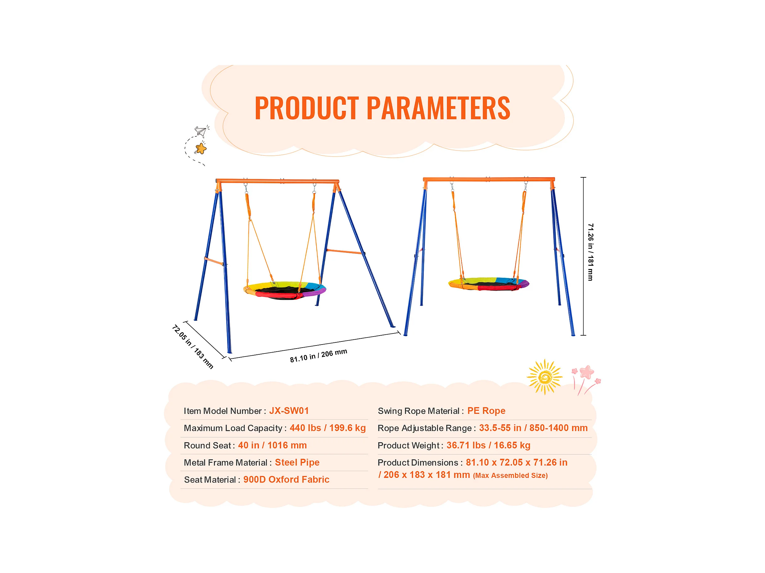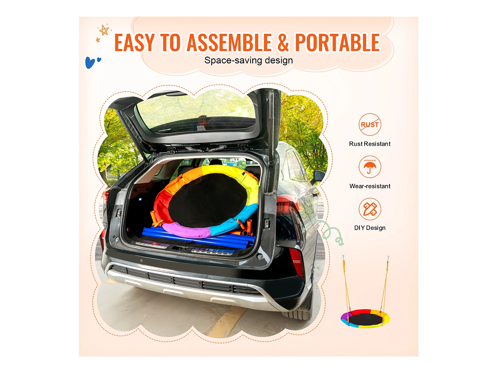Balançoire Nid d’Oiseau SucceBuy 101.6cm Balançoire soucoupe Capacité de 340.2kg Oxford 900D Multicolore