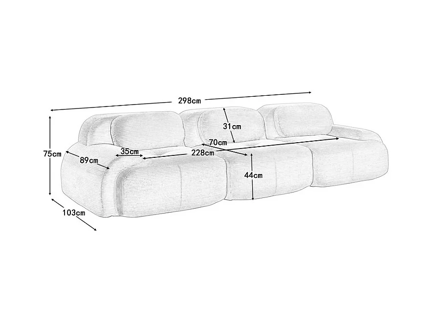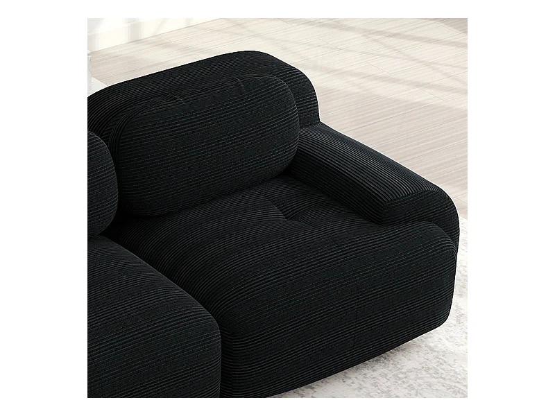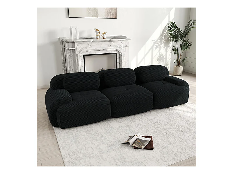 Canapé 3 places modulable en Velours côtelé - avec 3 oreillers - 298x103x75cm - Noir