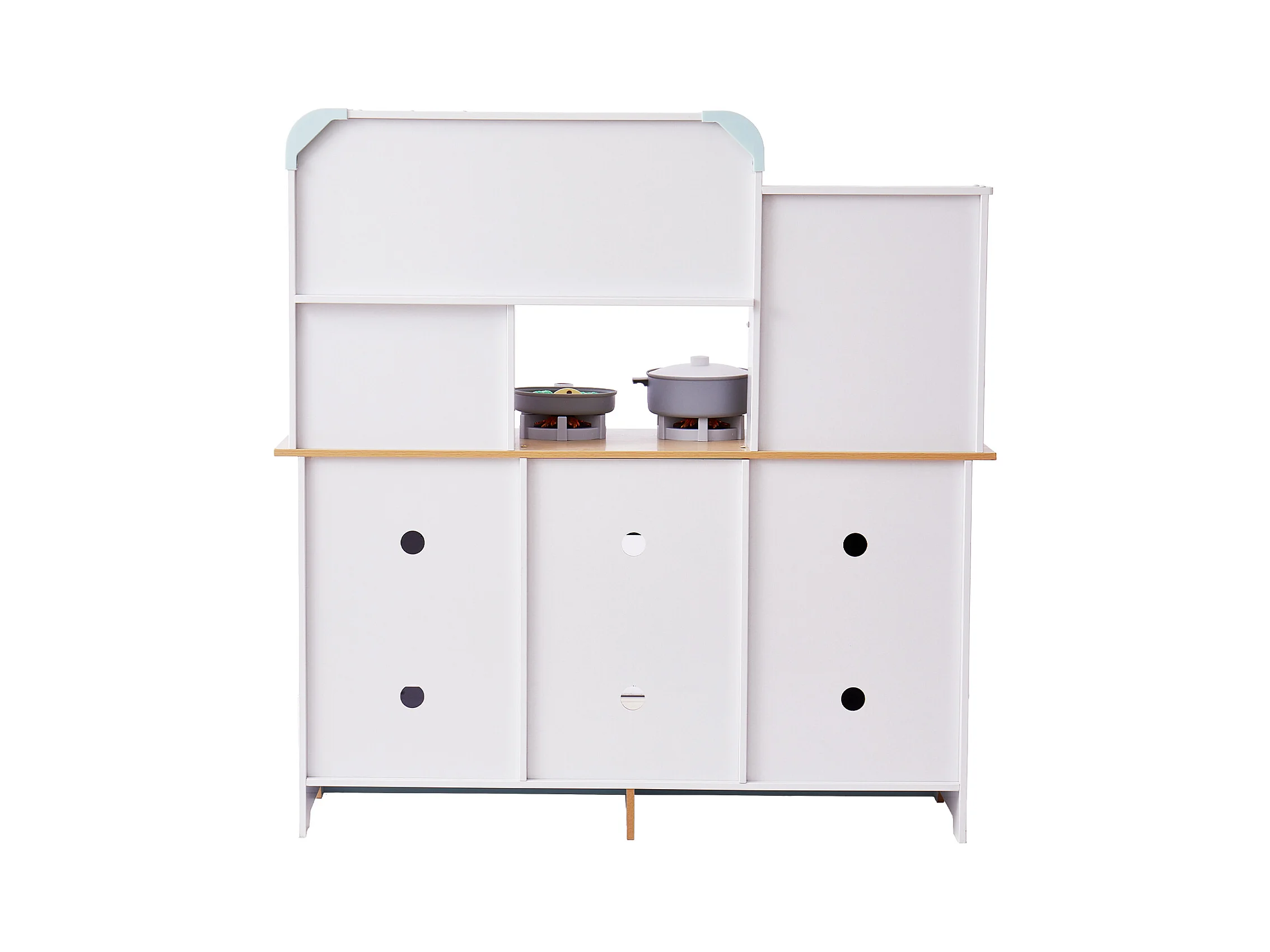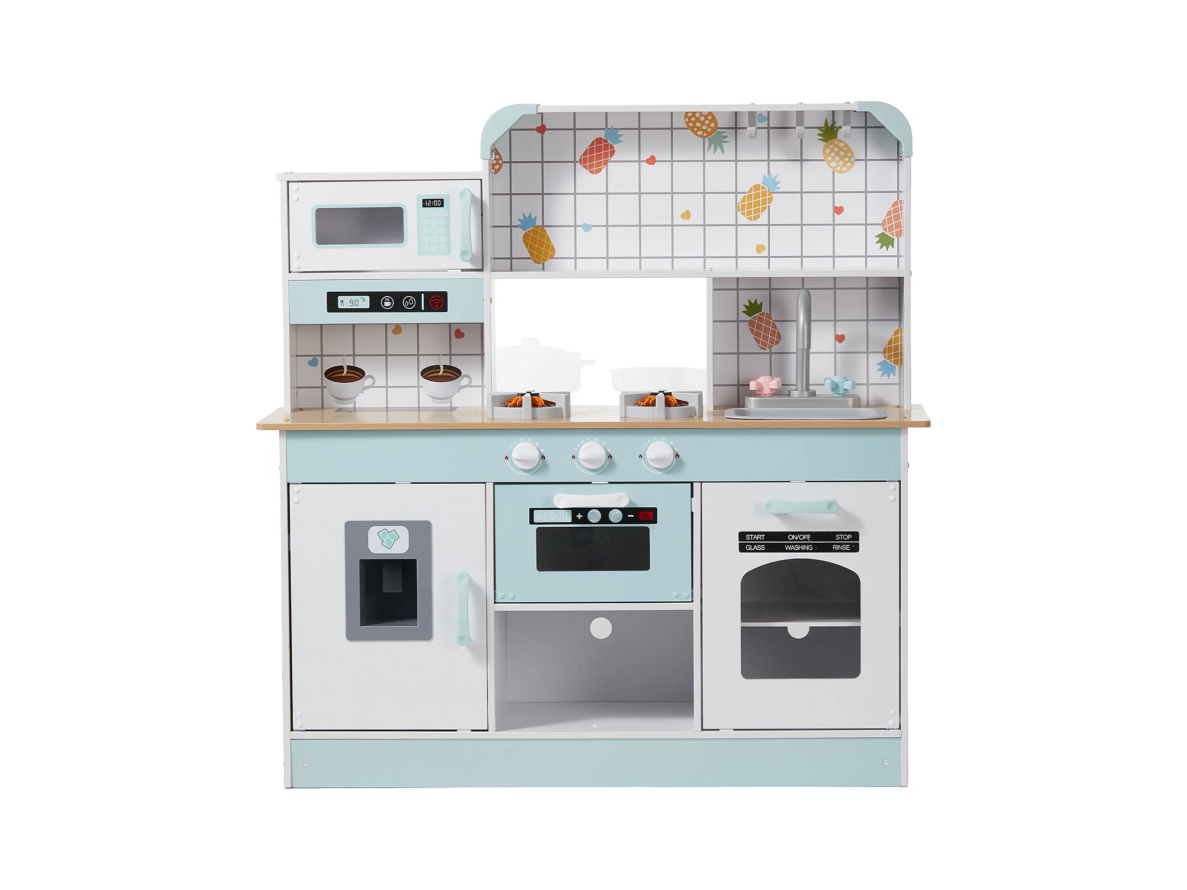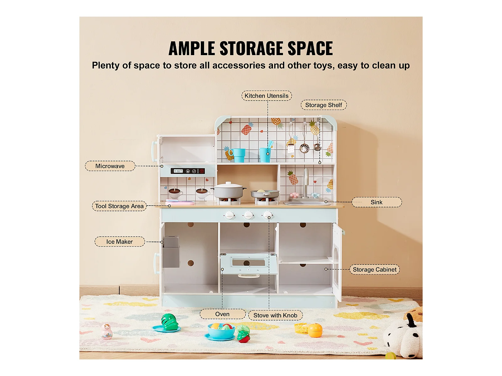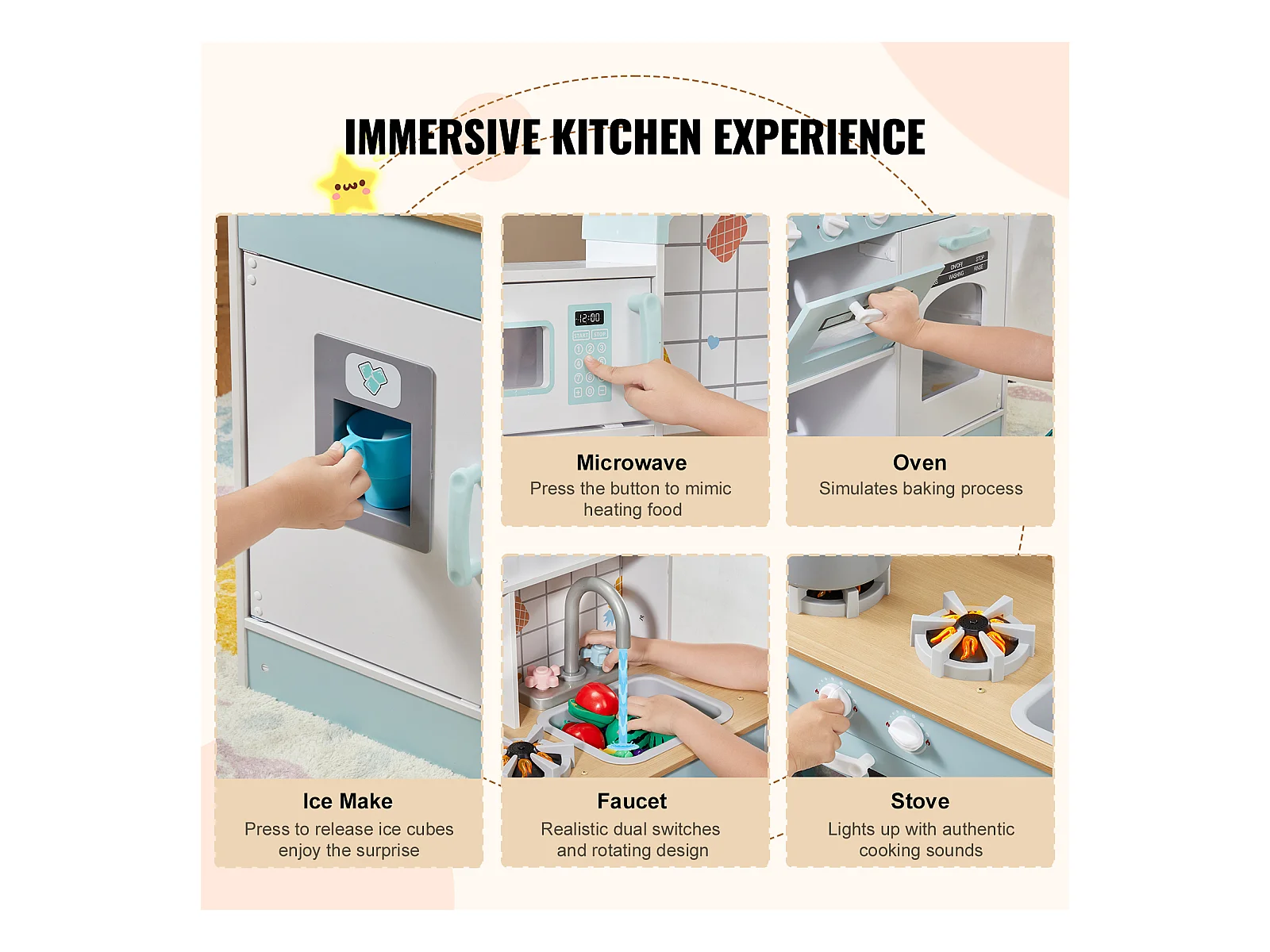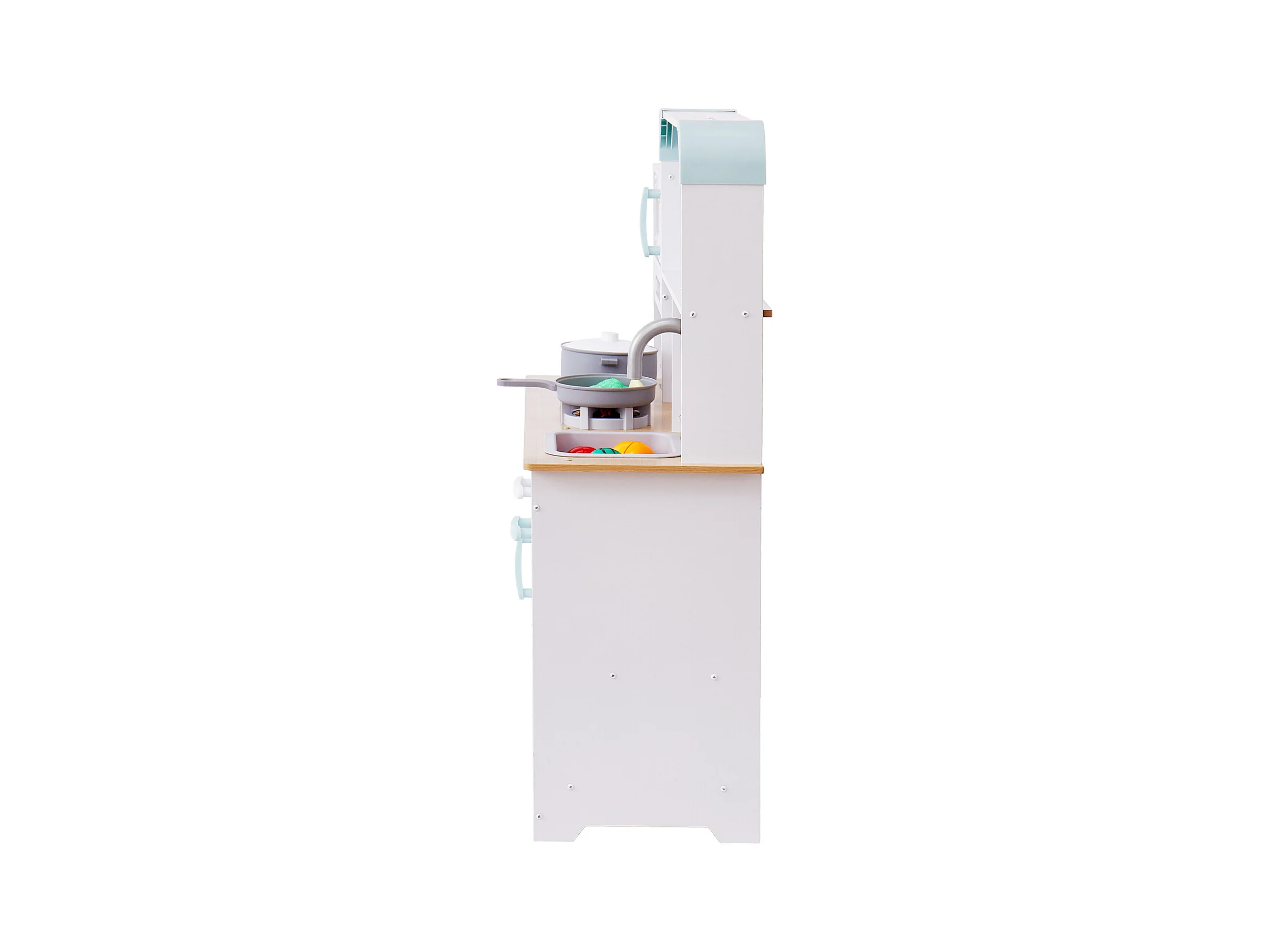 Ensemble de Cuisine SucceBuy pour Enfants, Cuisine de Jeu en Bois avec Lumières et Sons, Jouet de Cuisine avec 24 Pièces, Blanc