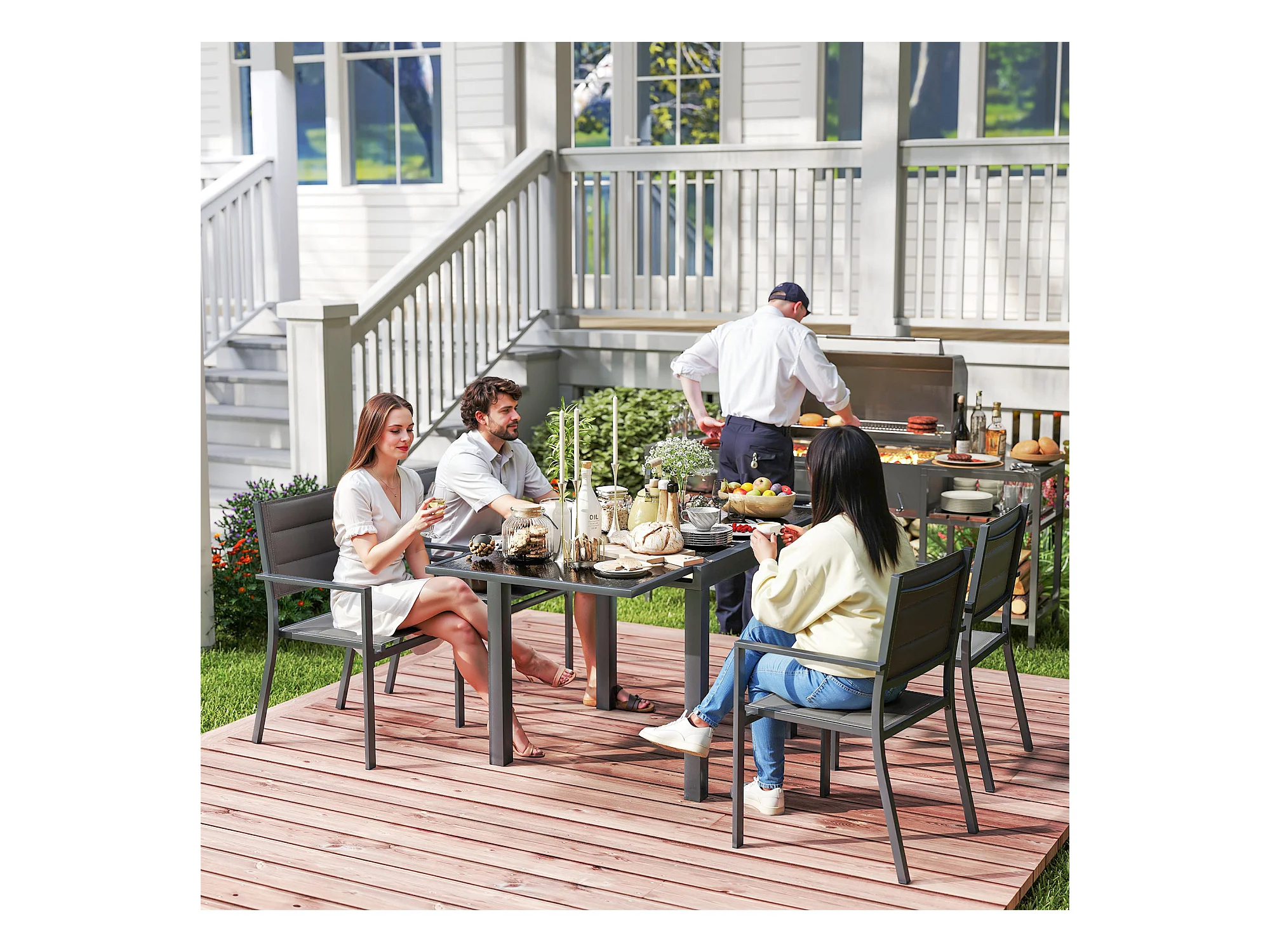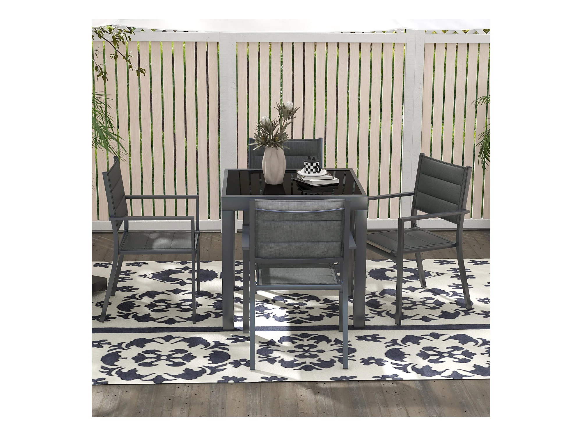 Ensemble de jardin 4 personnes chaises empilables table extensible 80/160L cm alu. teslin antracite