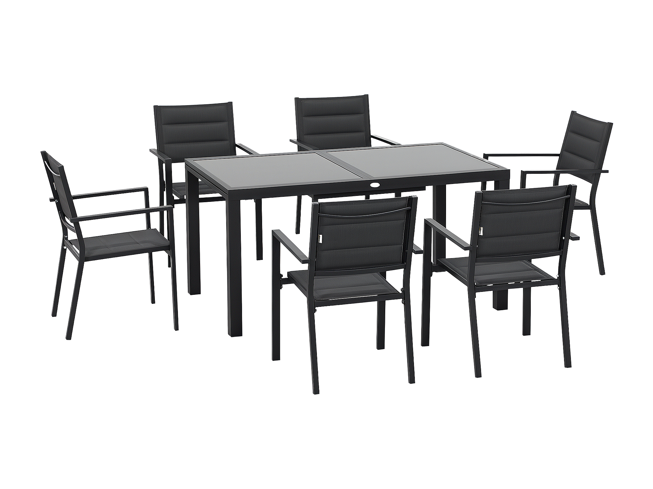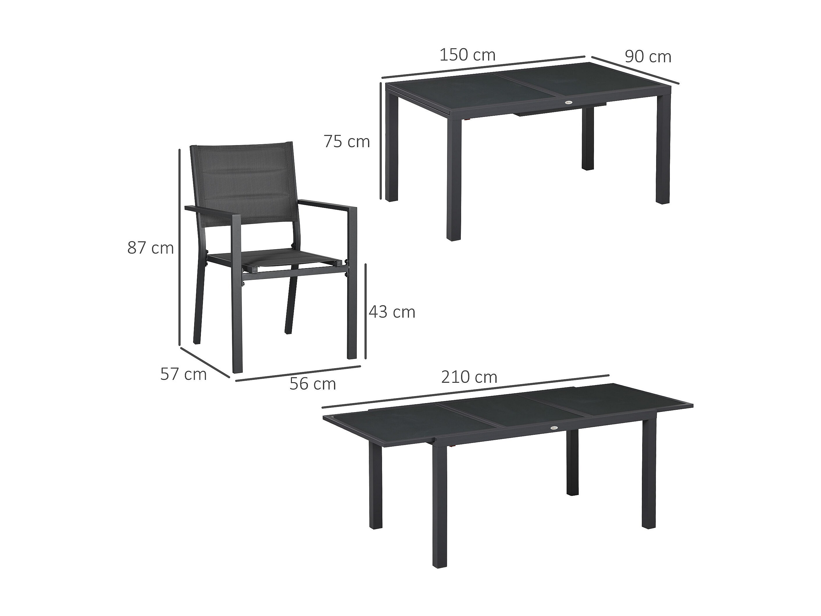 Ensemble de jardin 6 personnes chaises empilables table extensible 150/210L cm alu. teslin gris
