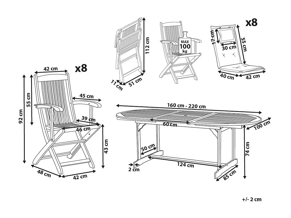 Salle à manger de jardin 8 places MAUI II avec coussins Acacia Gris