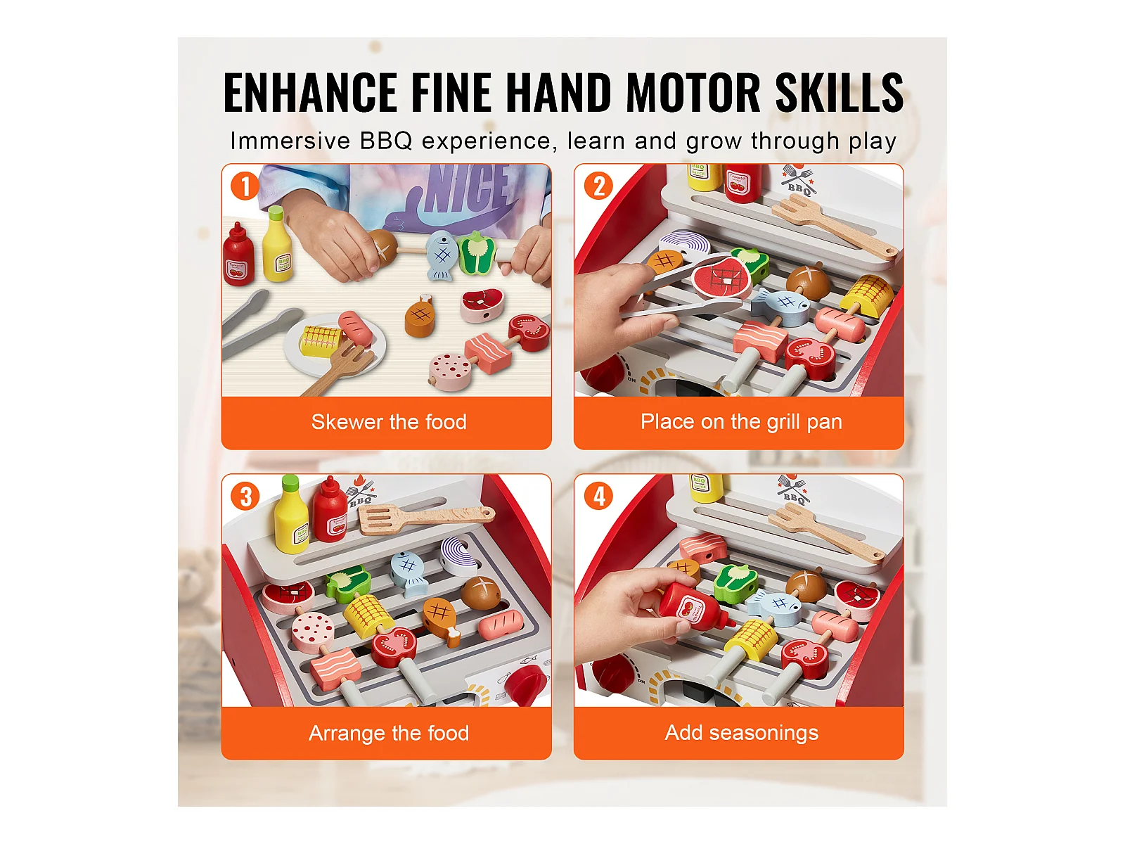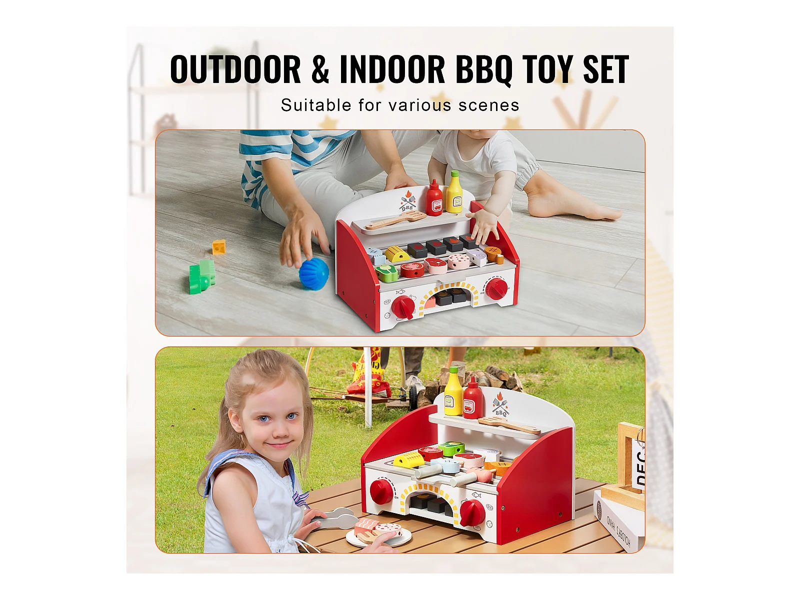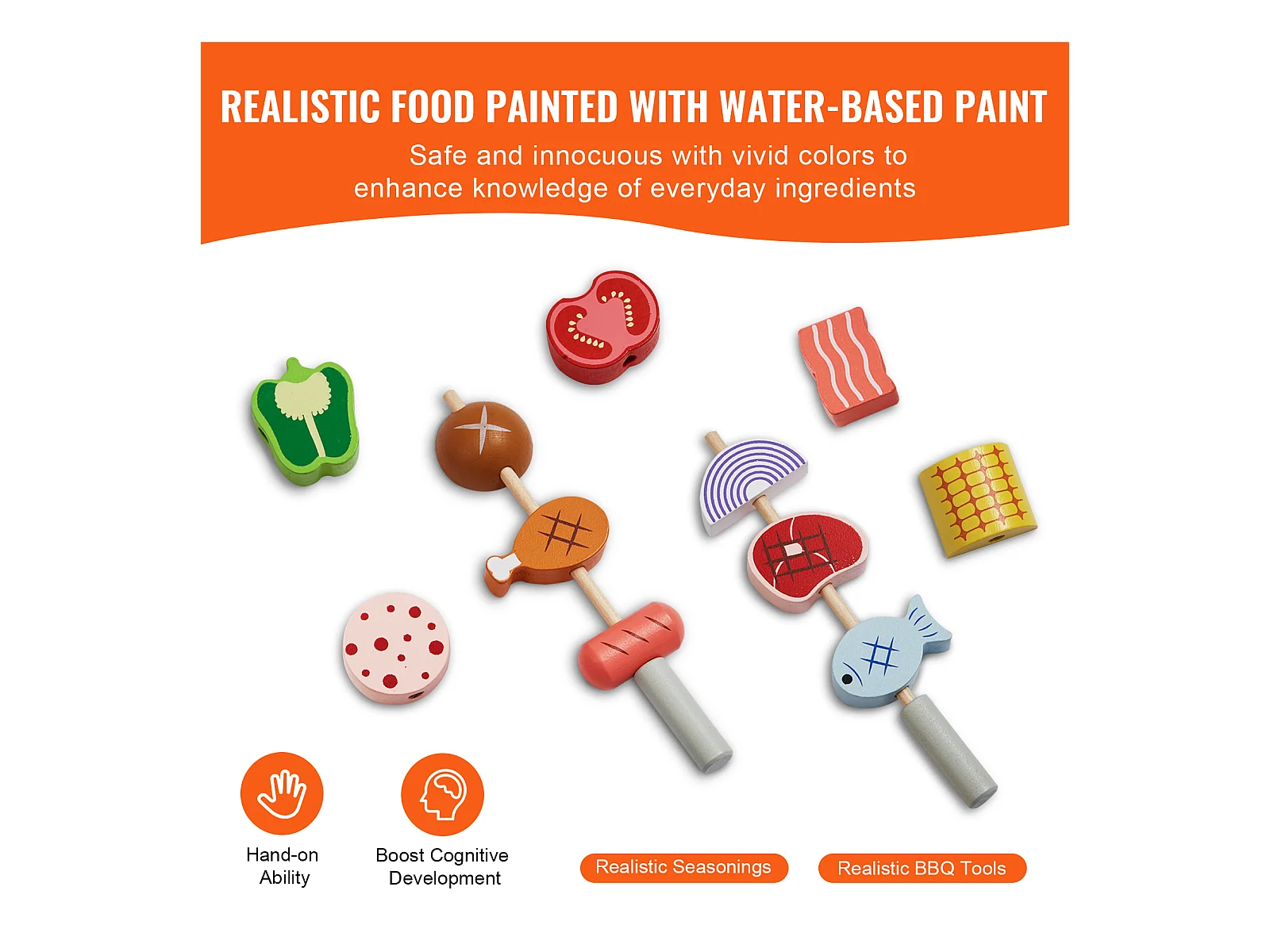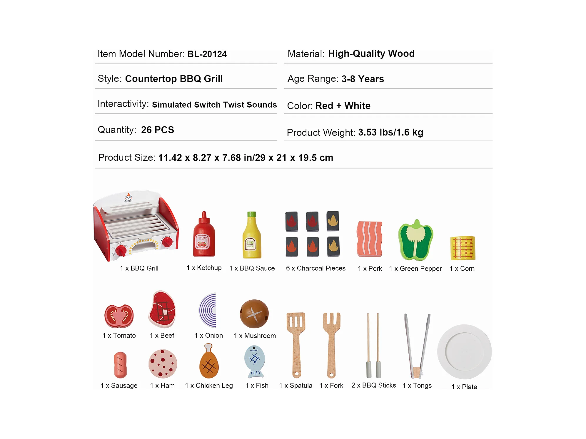 Ensemble de Jouet BBQ pour Enfant en Bois SucceBuy, Feu de Carbone Réaliste 26 PCS
