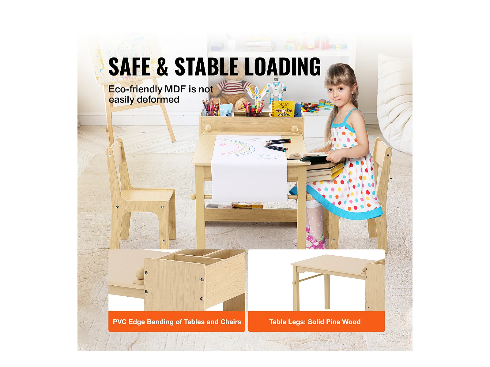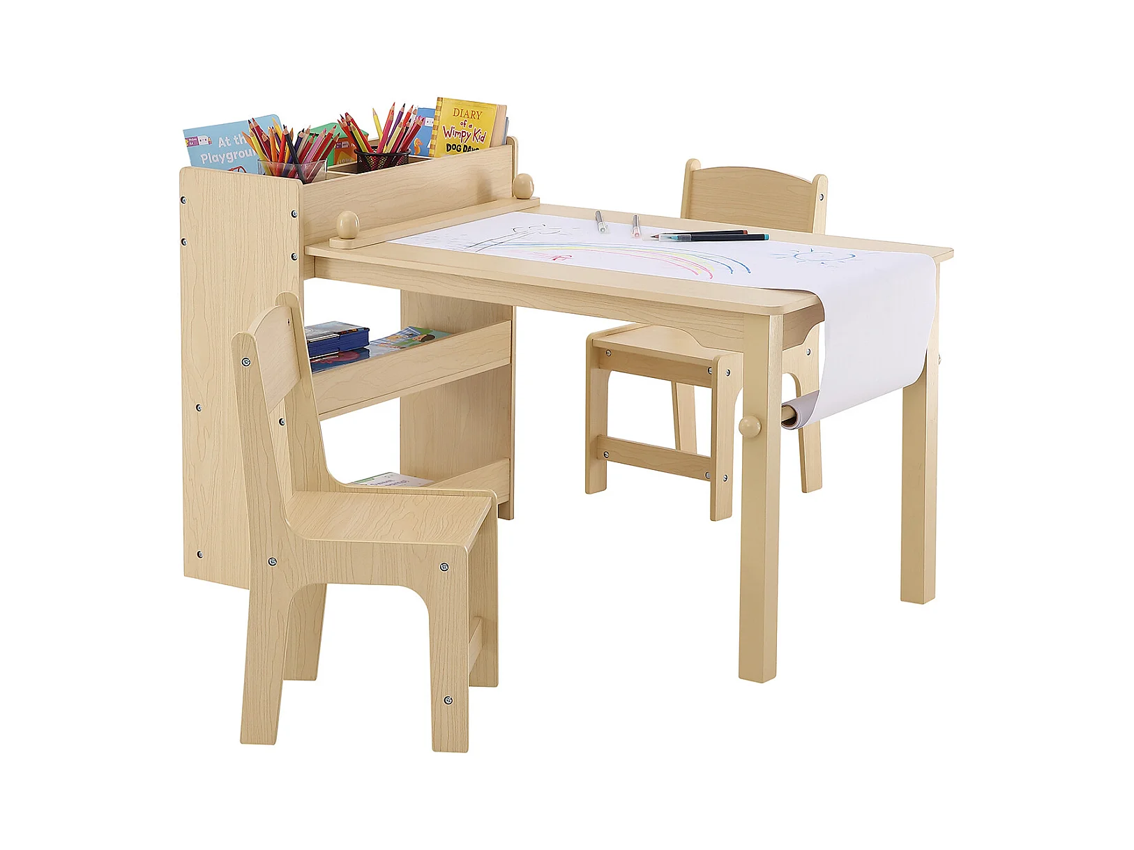 Ensemble de Meuble Table pour Enfants SucceBuy et 2 Chaises, Table de Bricolage et de Jeu pour Tout-Petits avec Armoire