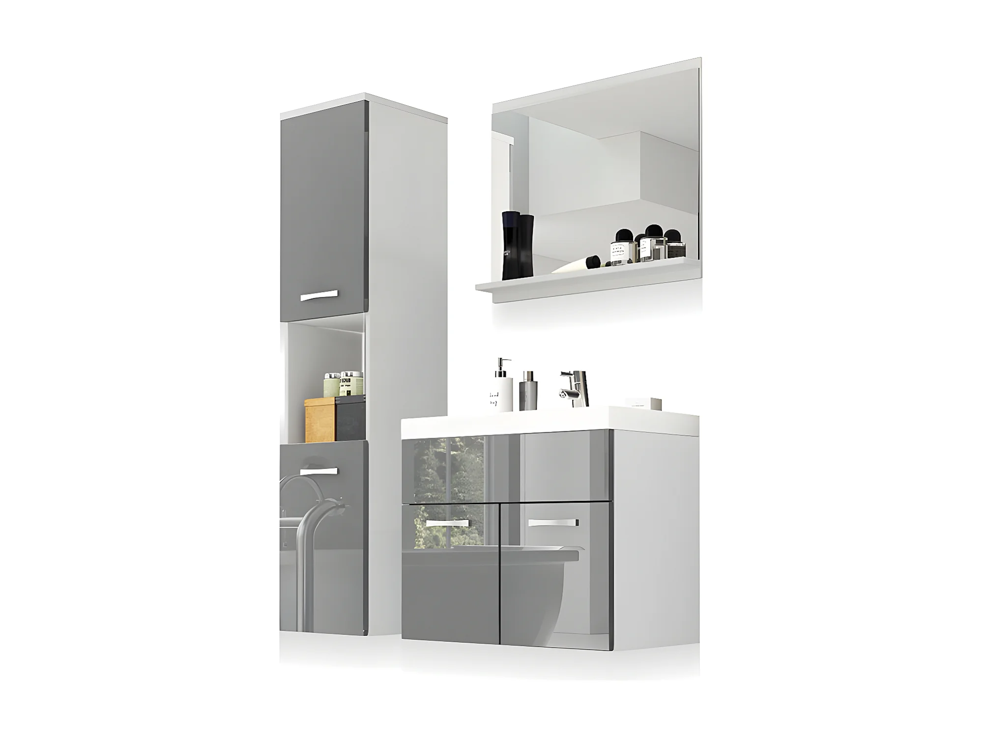 Ensemble de meubles de salle de bain - blanc mat / gris brillant - Sillali petit