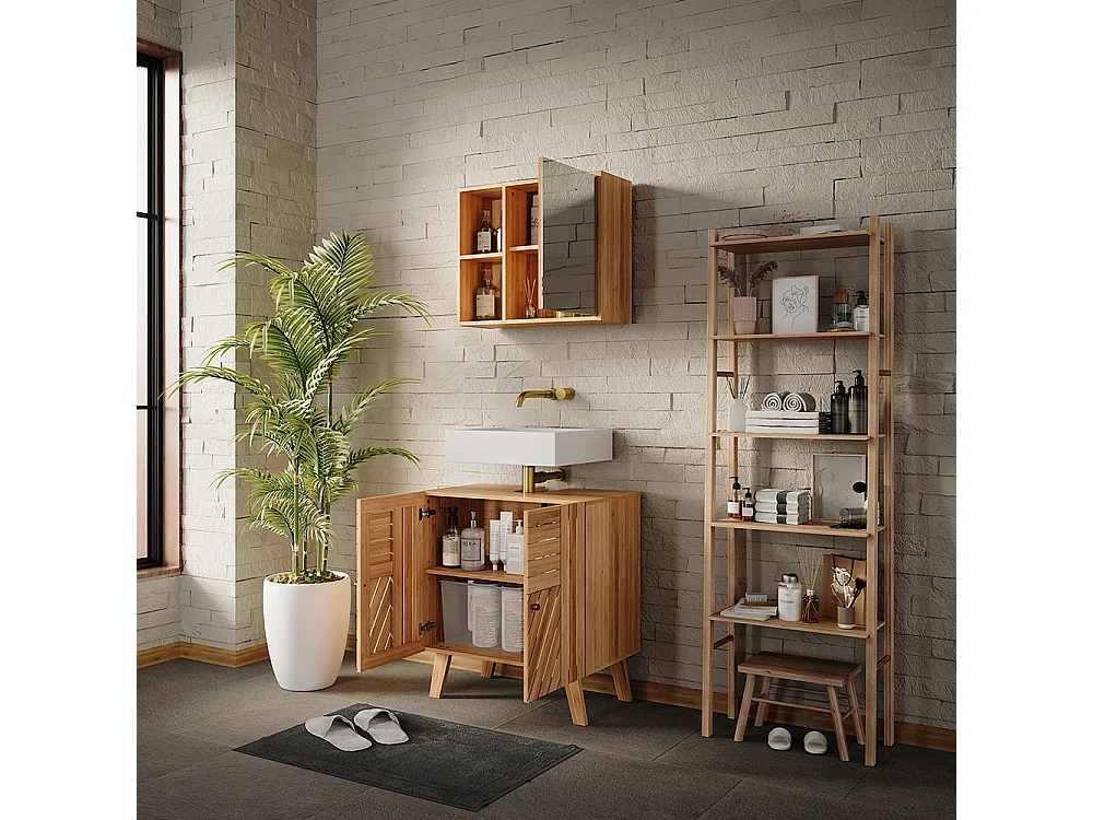 Ensemble de meubles de salle de bains bambou 60x36x65 lucie