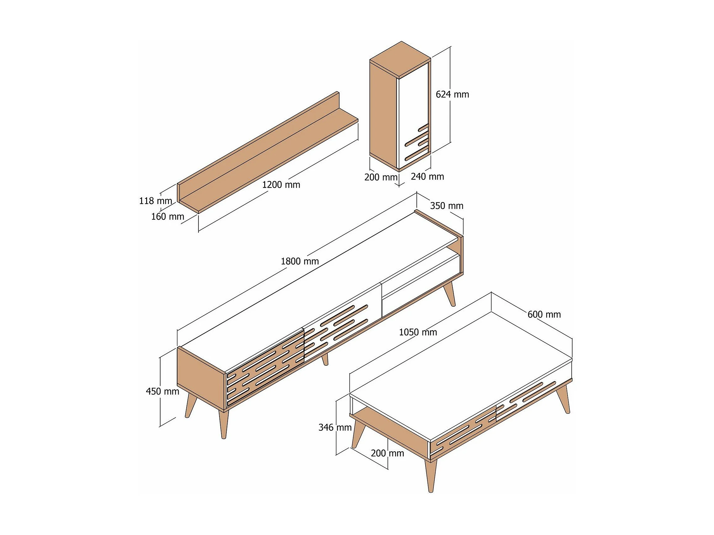 Ensemble meuble TV et table basse et étagère Chanez Bois Naturel