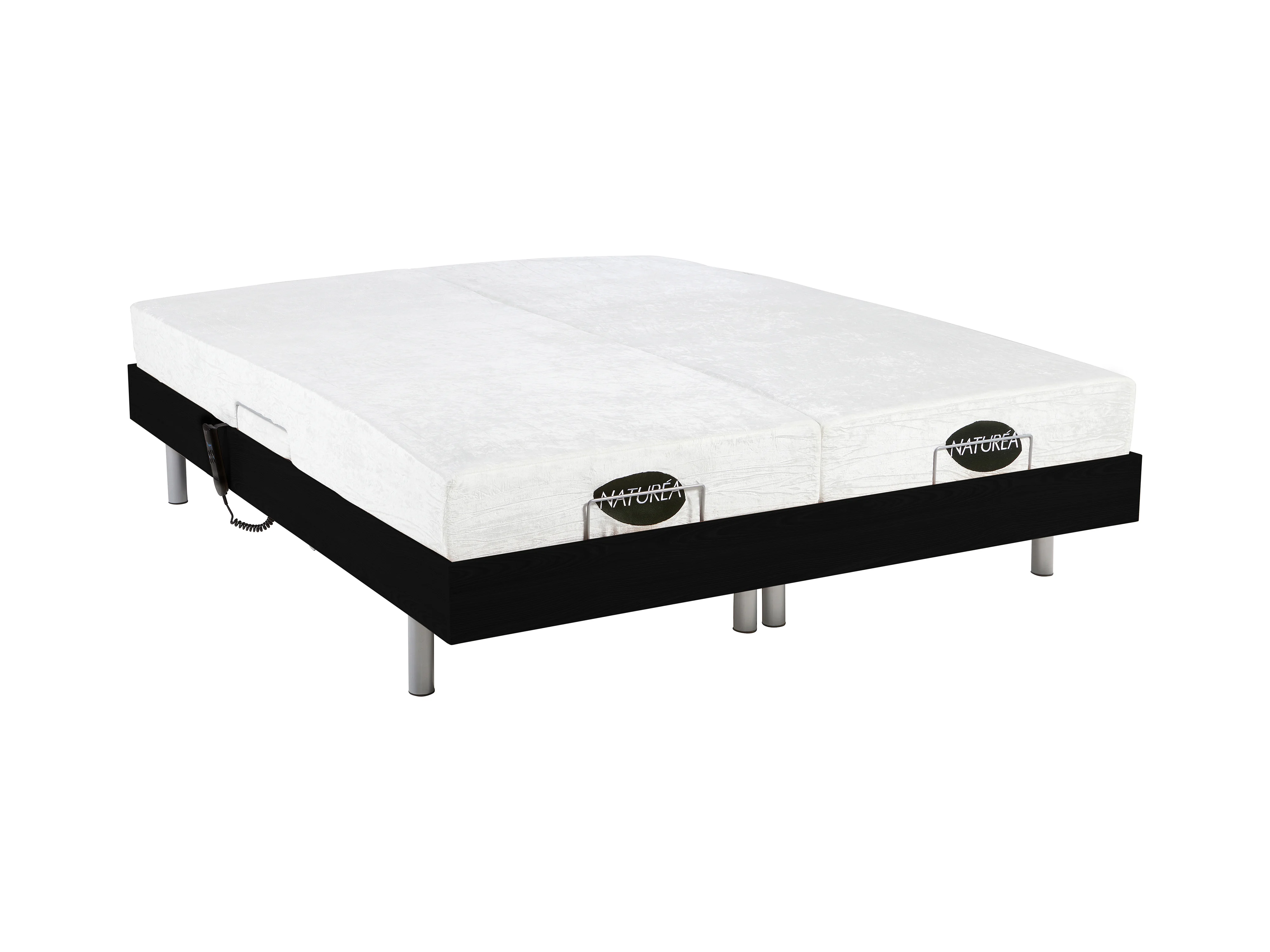 Lit électrique de relaxation tout plots + matelas mémoire de forme et bambou - 2 x 80 x 200 cm - Noir - LYSIS III de NATUREA