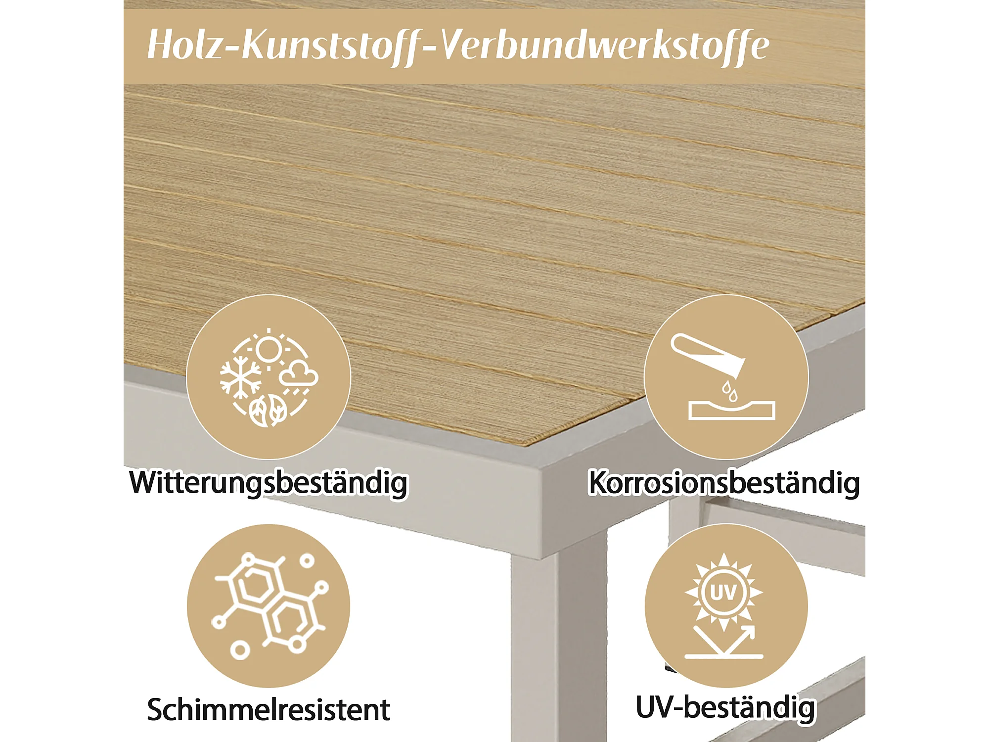 Ensemble de salle à manger de jardin 6 places - avec table + 6 chaises - structure en tubes d'acier galvanis - kaki + beige