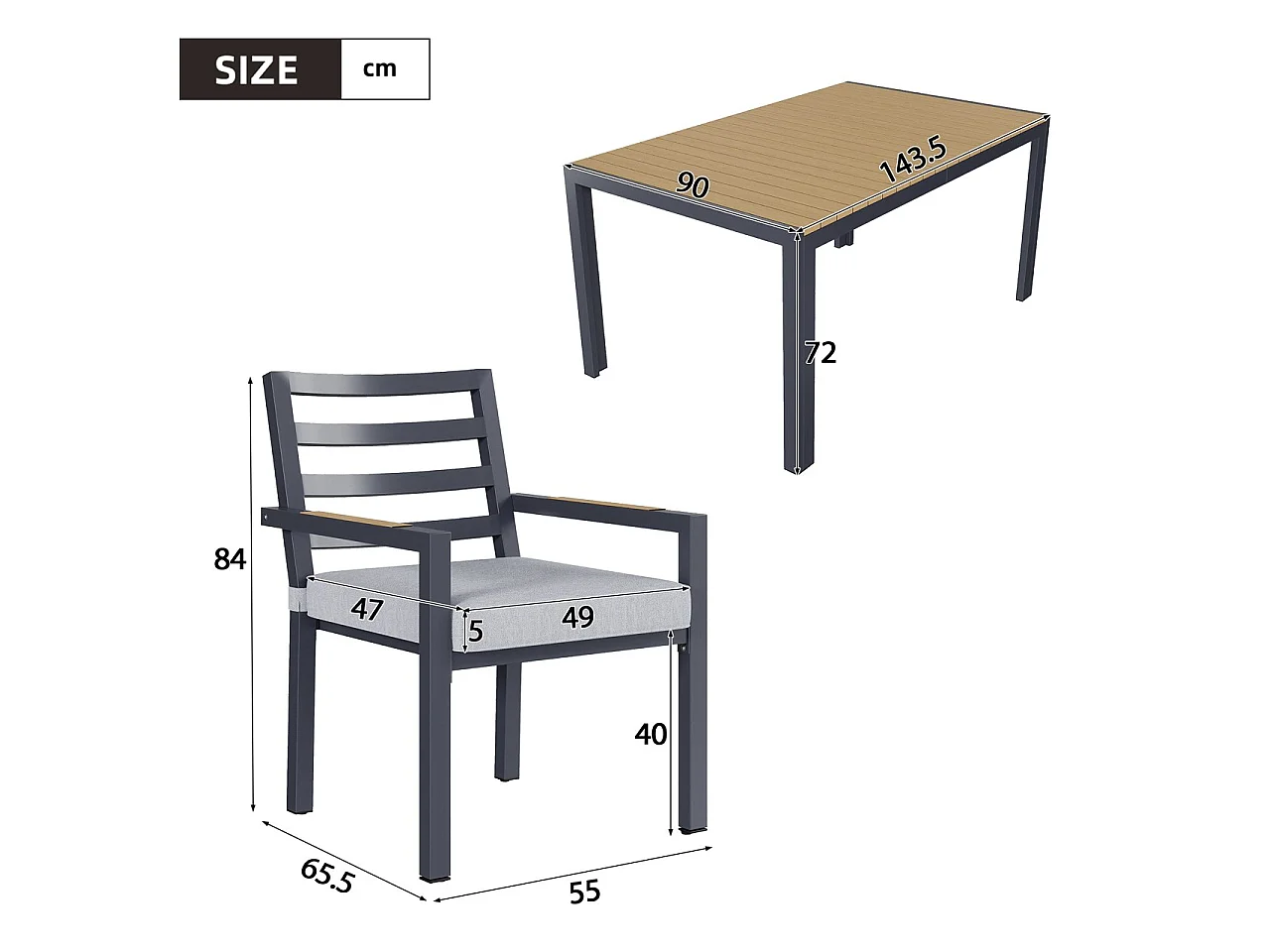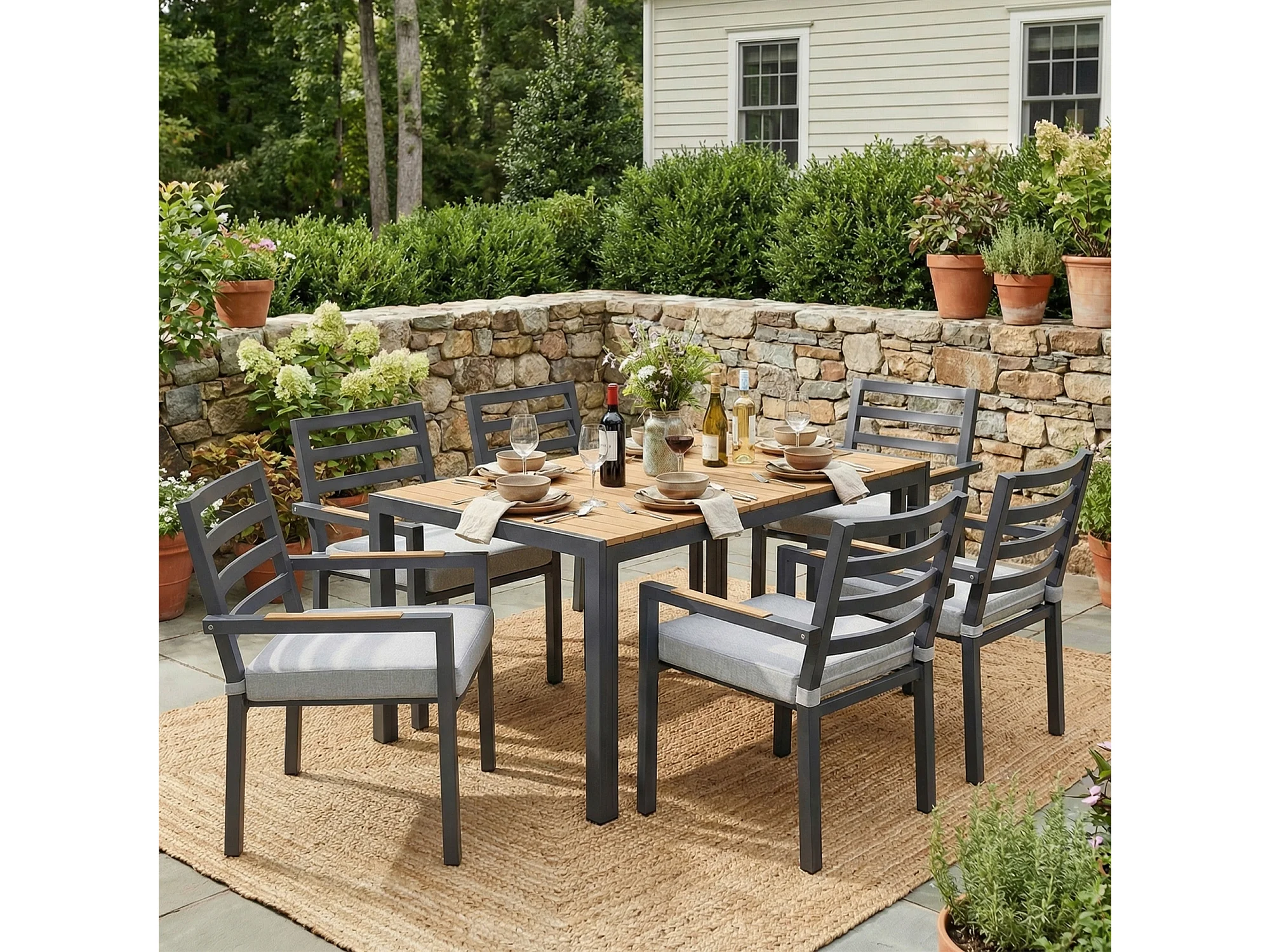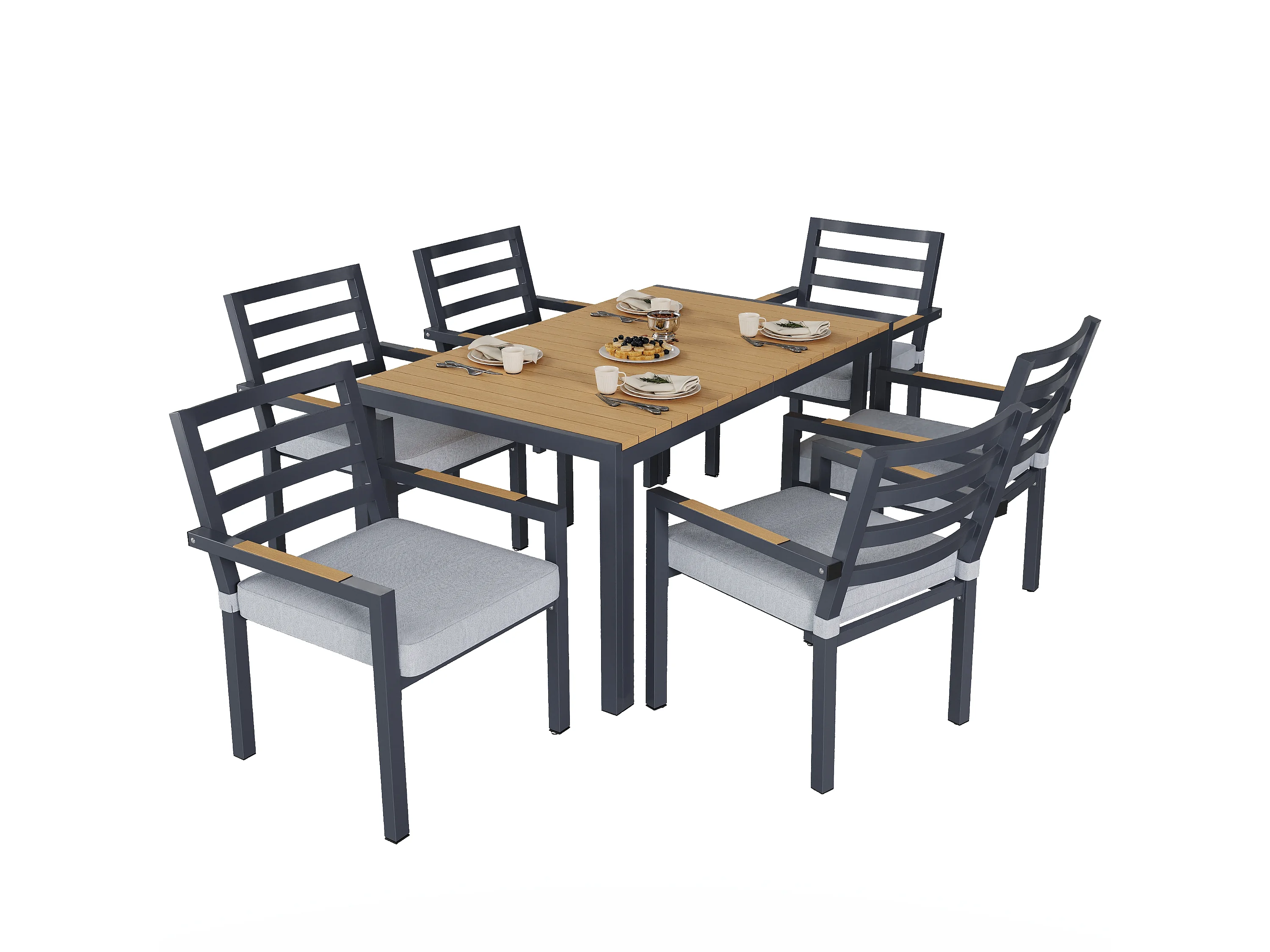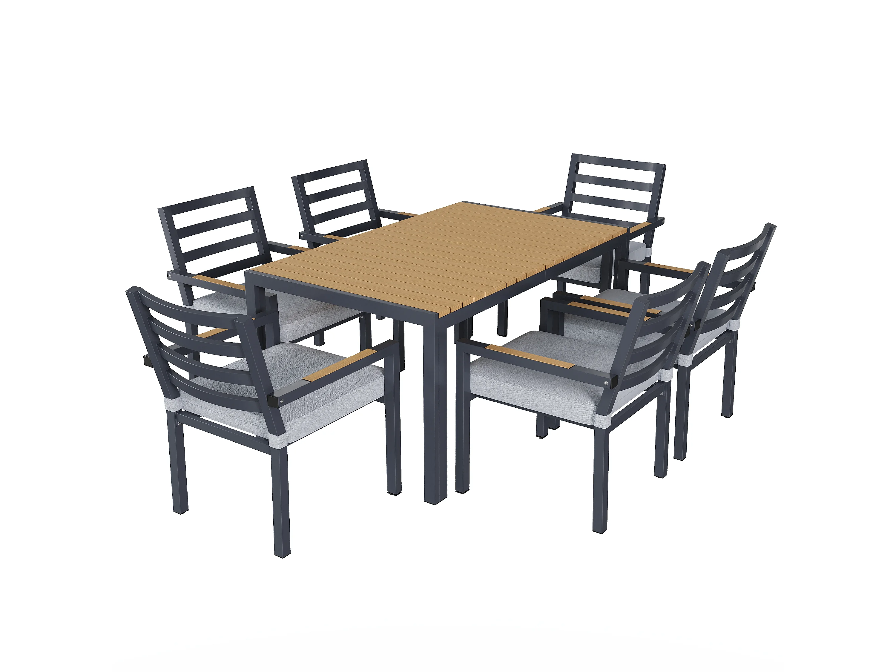Ensemble de salle à manger de jardin pour 6 places - 1 table et 6 chaises - Fer galvanisé, plateau en composite bois-plastique - Gris