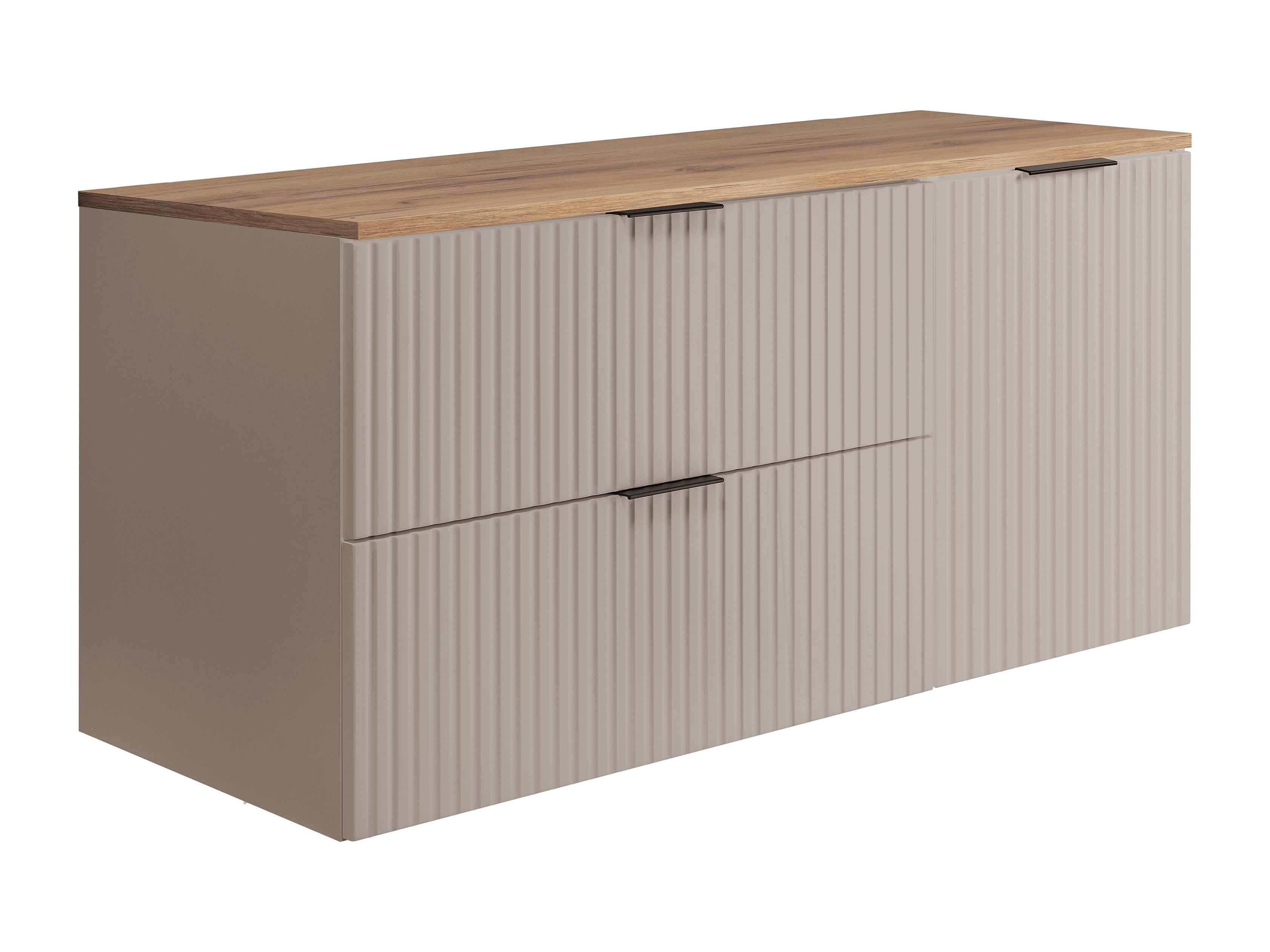 Ensemble de salle de bain : meuble avec tiroirs et meuble avec portes 57×46×120 cm, couleur : cachemire, poignée noire