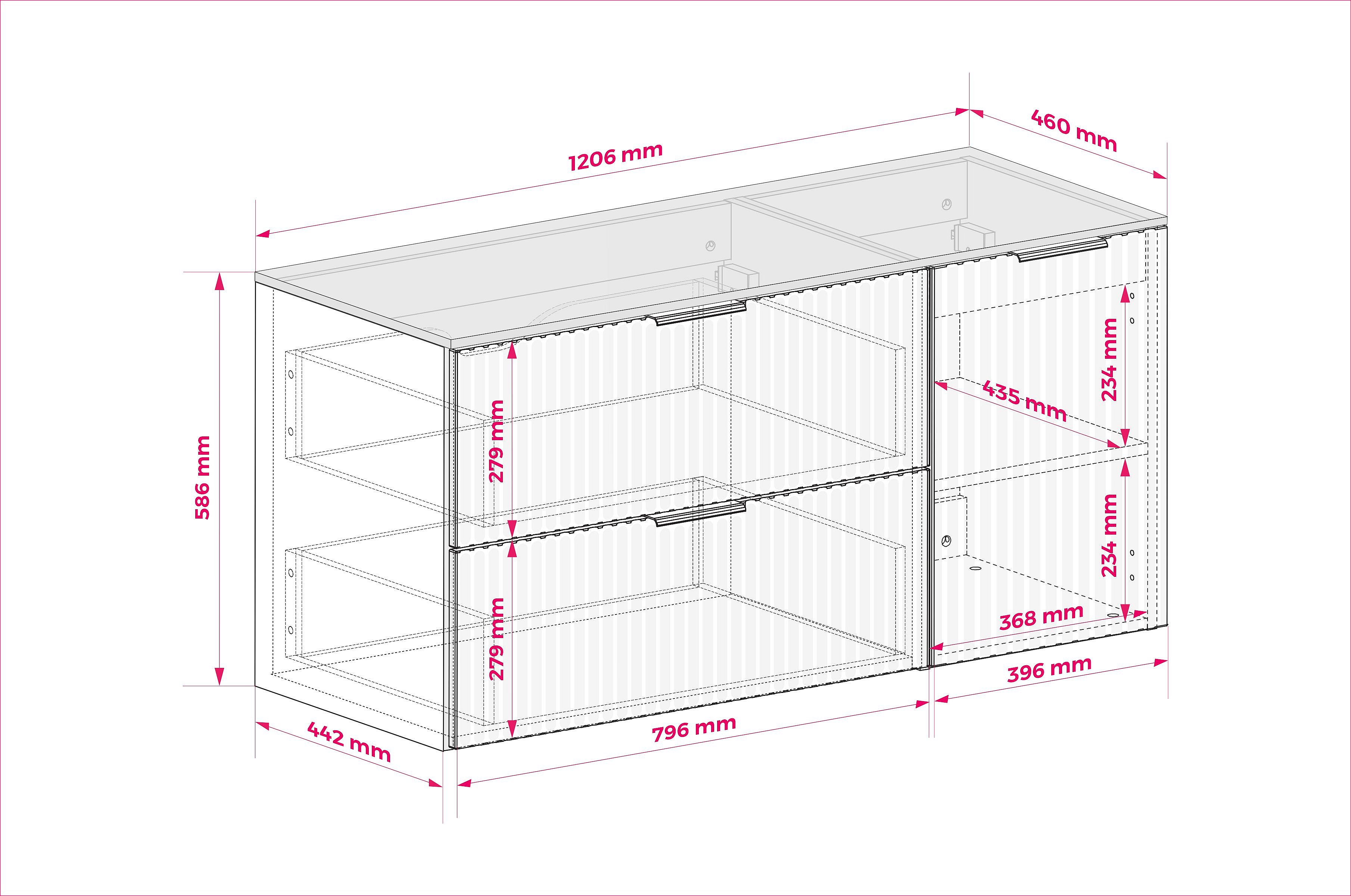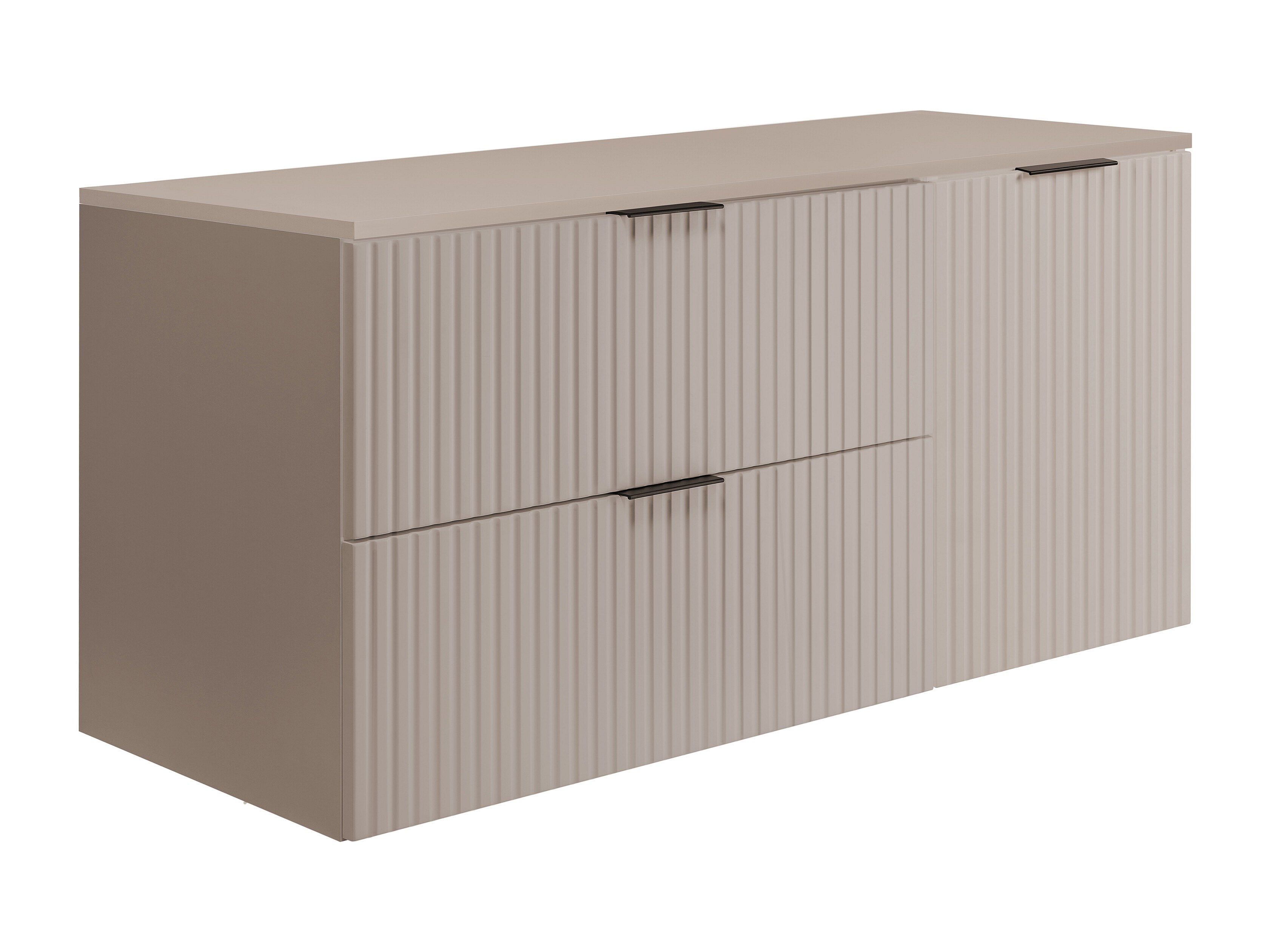 Ensemble de salle de bain : meuble avec tiroirs et meuble avec portes 57×46×120 cm, couleur : cachemire, poignée noire